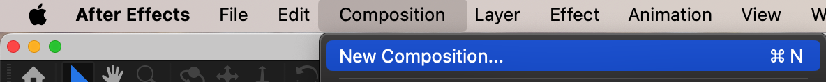 Open After Effects and go to Composition > New Composition. Set your desired resolution and frame rate, then click OK to create the composition.