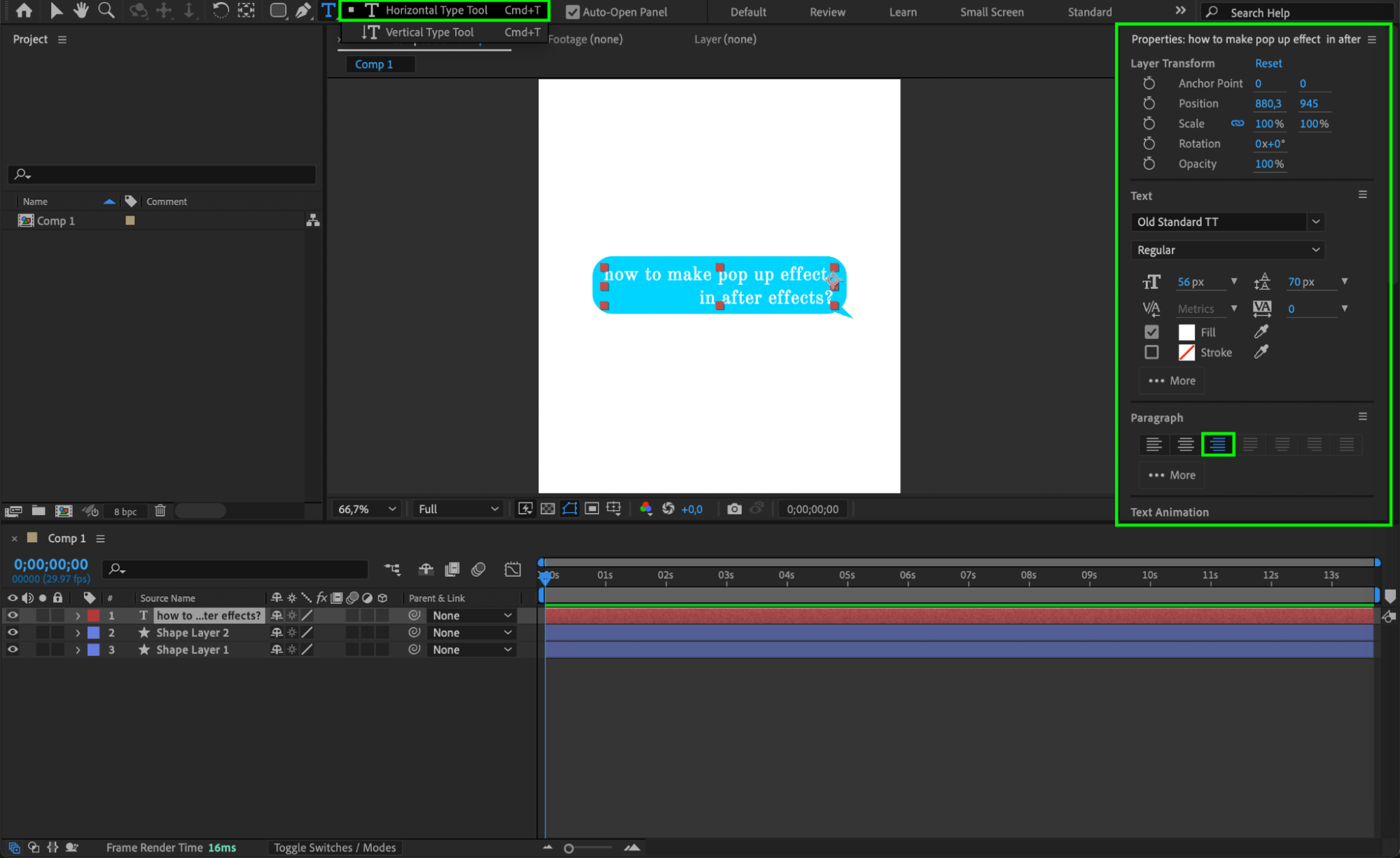 Pop-up animations are commonly used in UI design, notifications, and motion graphics to grab attention and enhance visual appeal. In After Effects, you can create a smooth pop-up effect using shape layers, text, and simple animations. This tutorial will guide you through the process of designing a rounded speech bubble, adding text, and animating it with a smooth scaling effect. By the end, you’ll have a professional-looking pop-up animation ready to use in your projects.