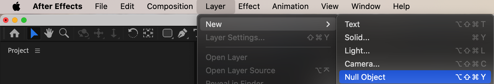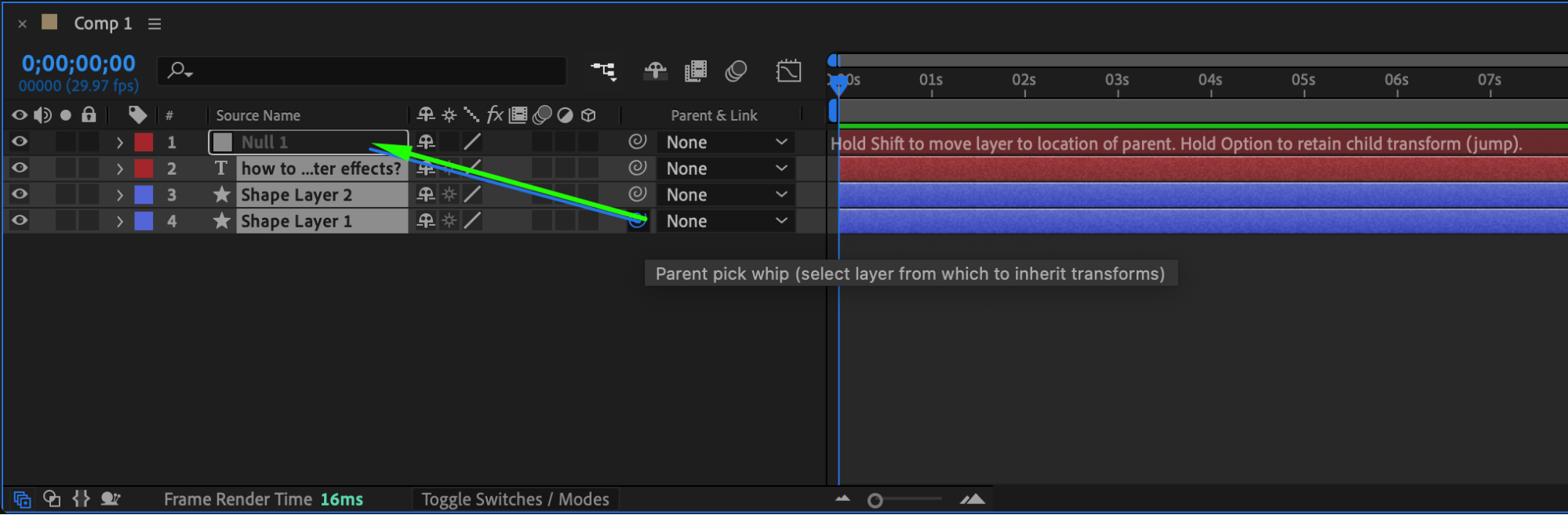 Step 6: Create a Null Object and Parent Layers