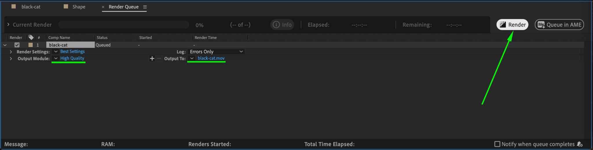 When satisfied with the result, render your project. Go to Composition > Add to Render Queue, select your preferred format (e.g., H.264 for video), and click Render.