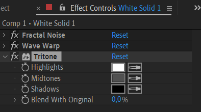 Transitioning to the Tritone Effect, refine the color composition with a discerning touch. Adjust the Midtone to Gray, maintaining the other settings in their current configurations. This subtle modification introduces a nuanced grayscale tone to the composition, contributing to the visual depth and sophistication of your design.