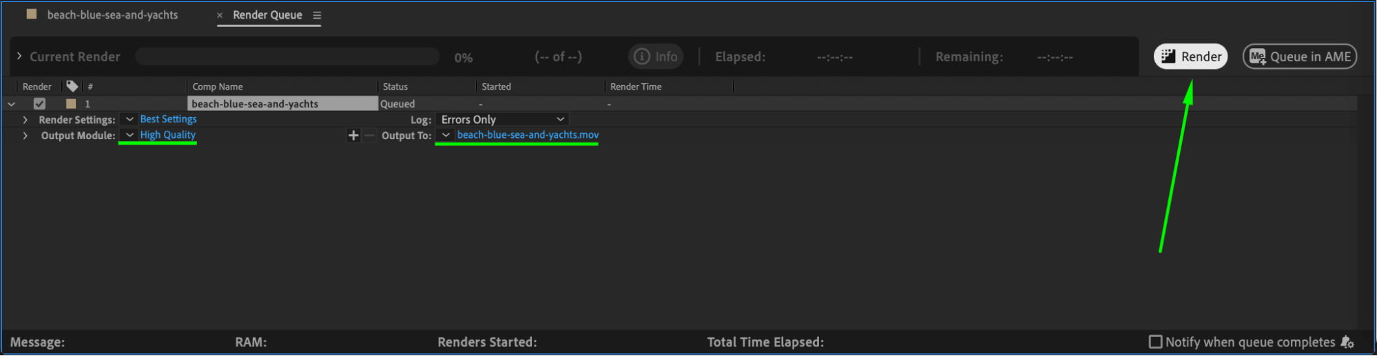 Once satisfied, go to Composition > Add to Render Queue or Add to Adobe Media Encoder Queue to export your video with the new lens blur transition.