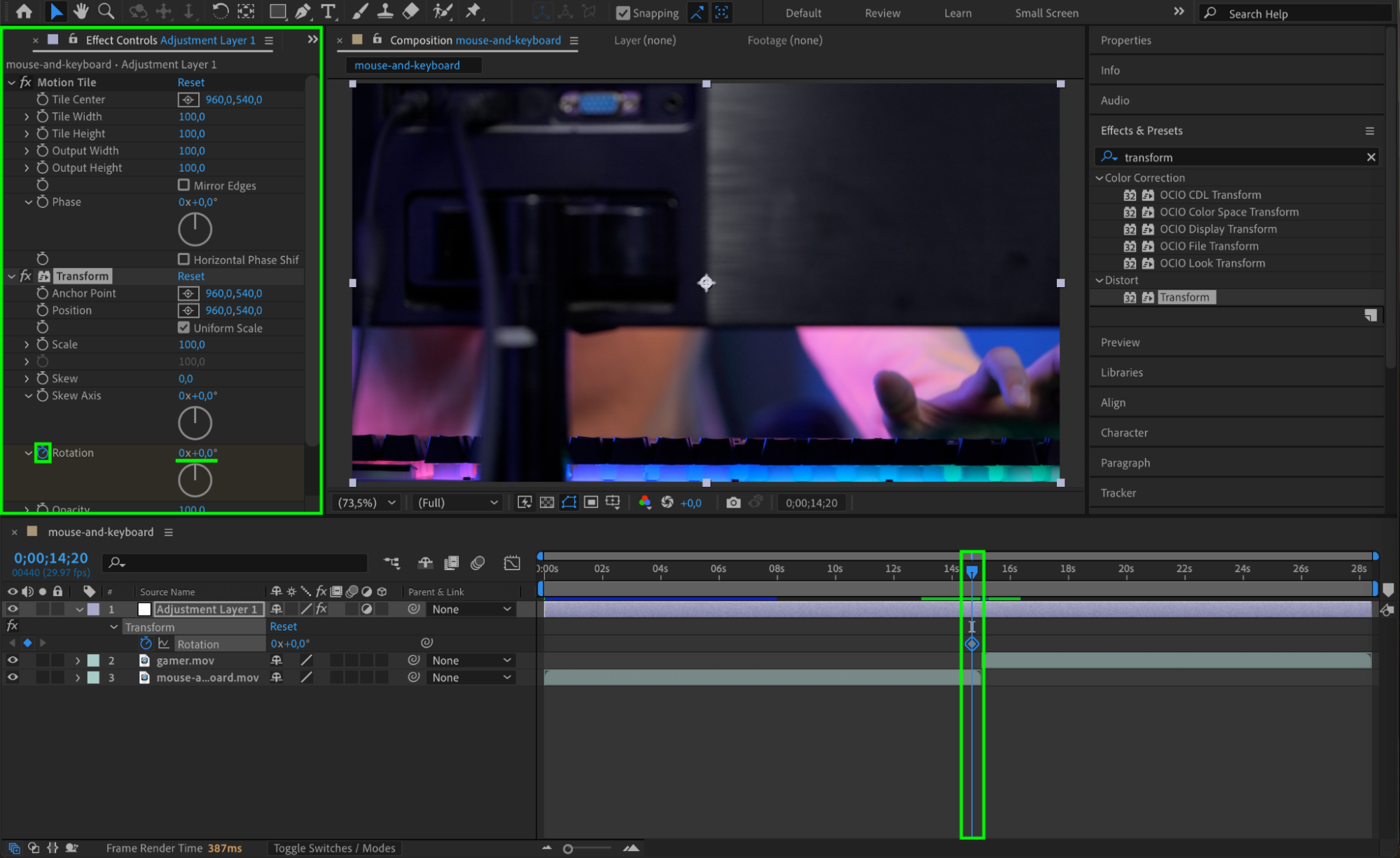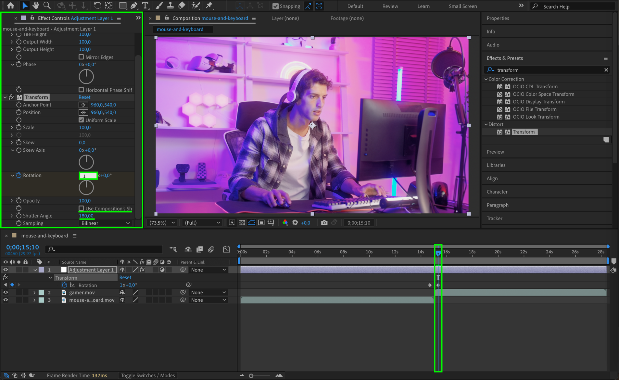 Once you are satisfied with the result, render the animation by going to Composition > Add to Render Queue. Choose your settings and click Render to export the video with the spin transition effect.
