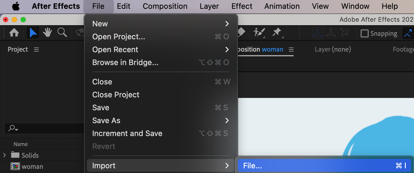 First, import the video footage you want to edit into After Effects. To do this, navigate to File > Import > File, and select your video. Once imported, the footage will appear in the Project panel. Drag and drop the video onto the Timeline panel to begin working on it.