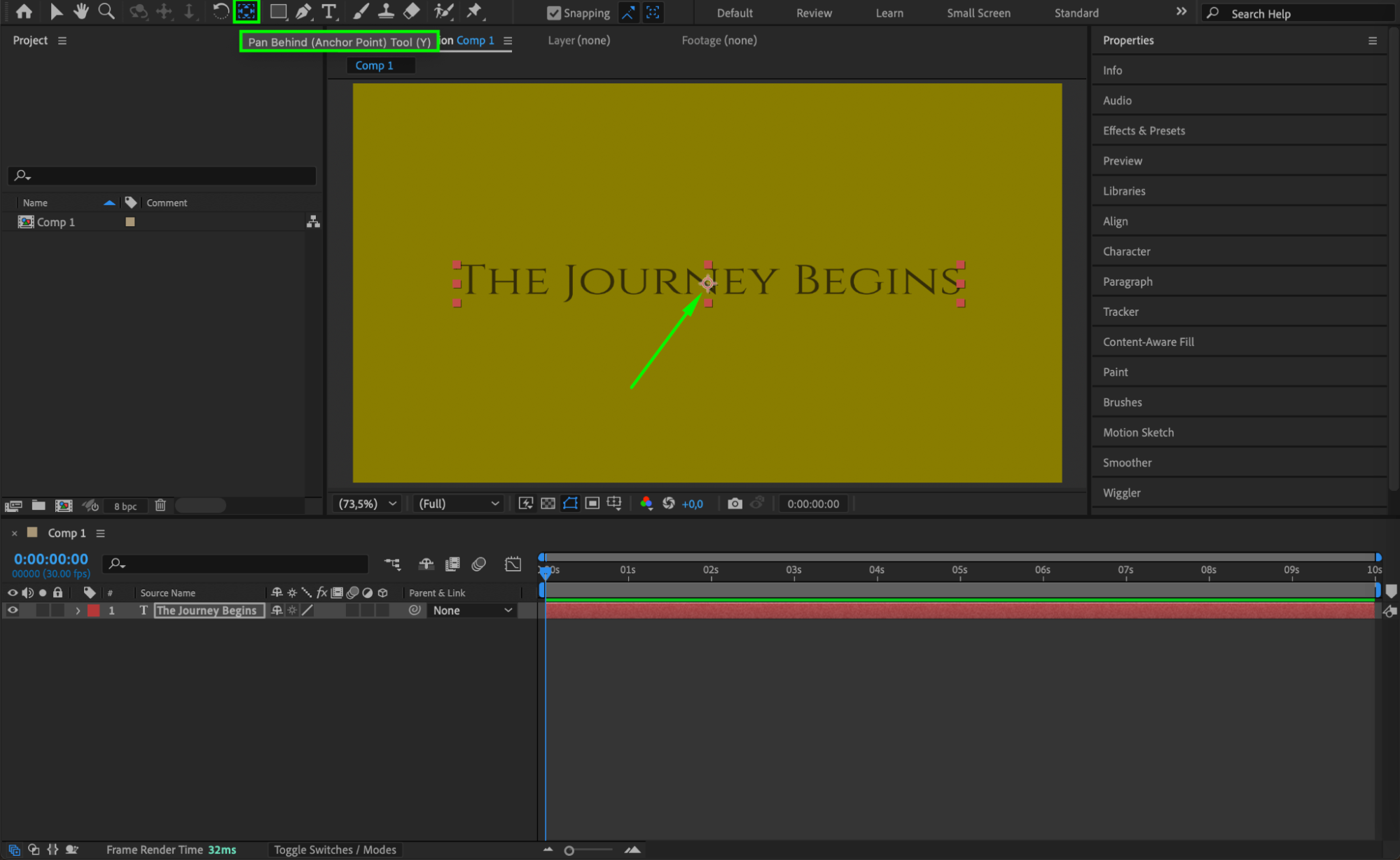 Use the Pan Behind Tool (Y) to move the anchor point to the center of the text. This ensures smooth scaling and animation.