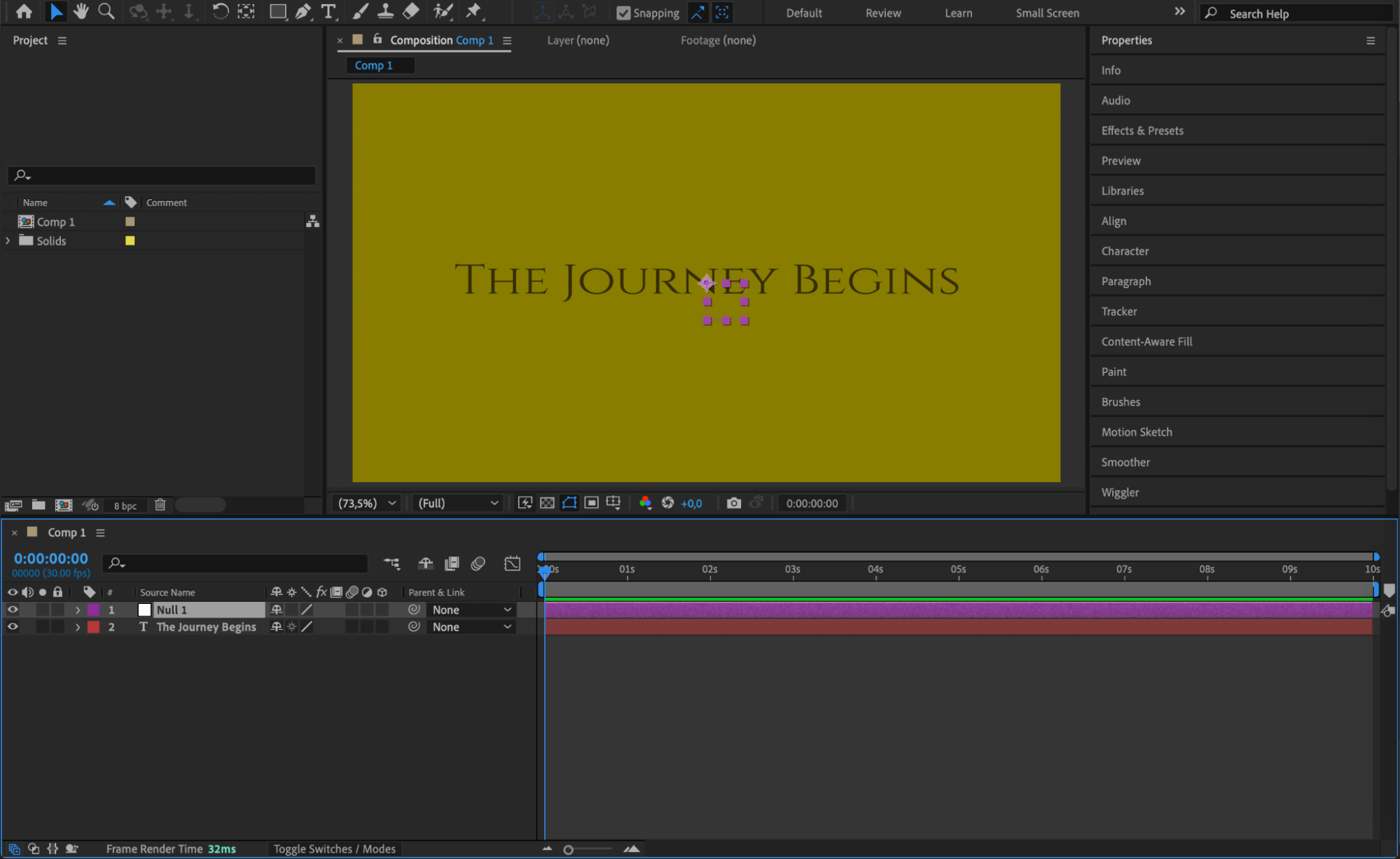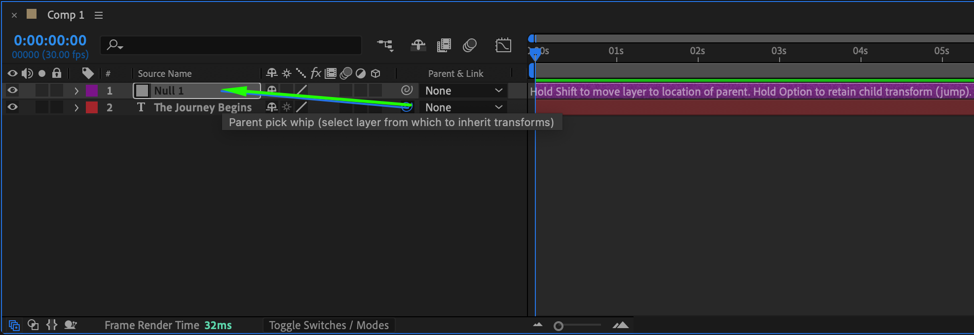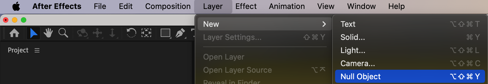 Go to Layer > New > Null Object. Change the label color to keep your project organized. This null object will control multiple text layers for easier animation.