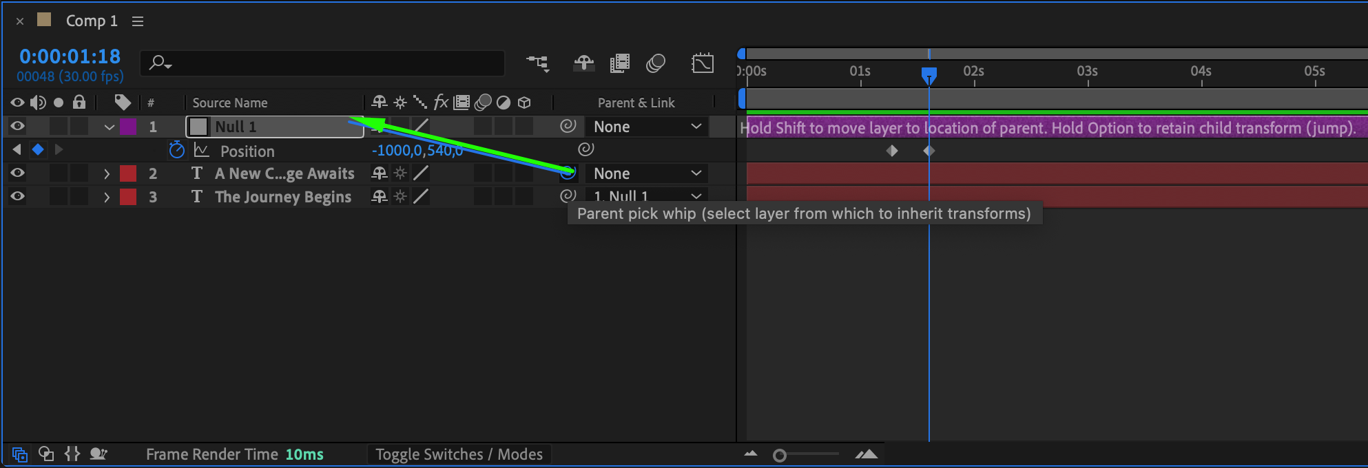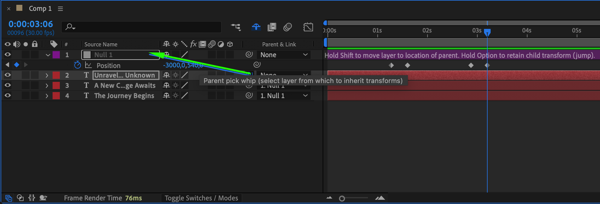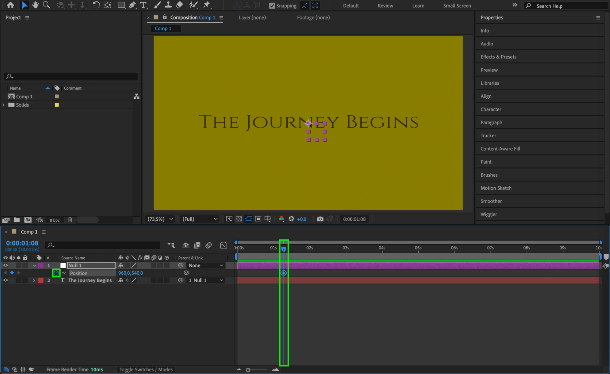 Select the Null Object and click the stopwatch next to Position to create a keyframe.