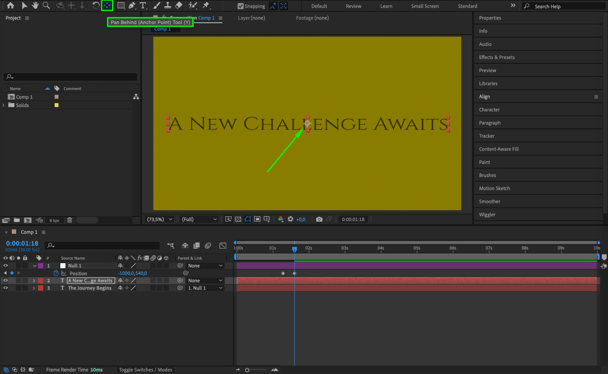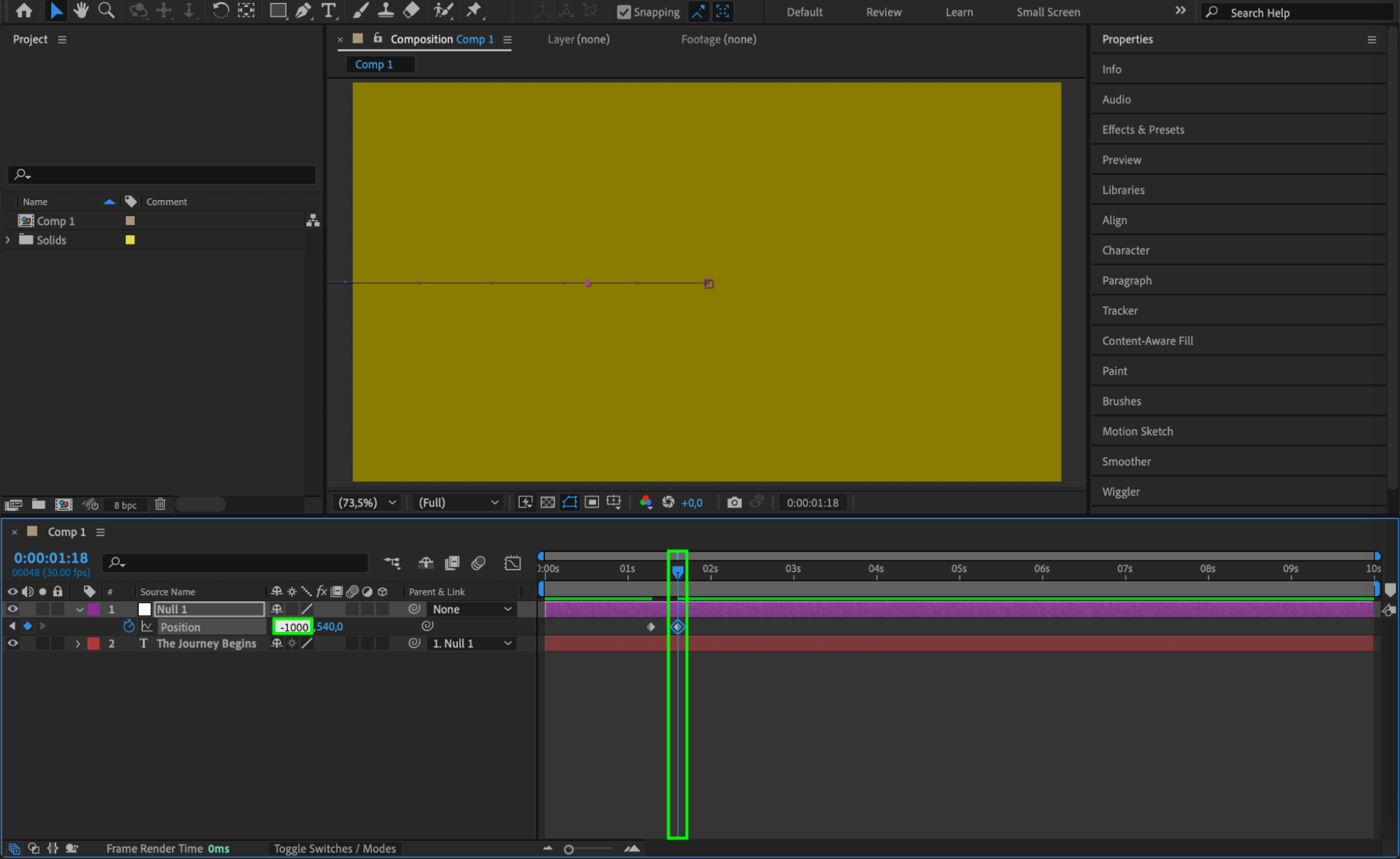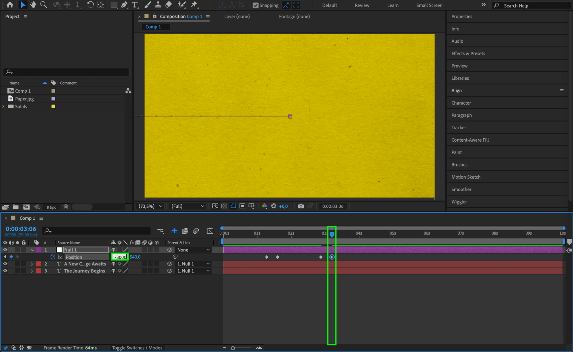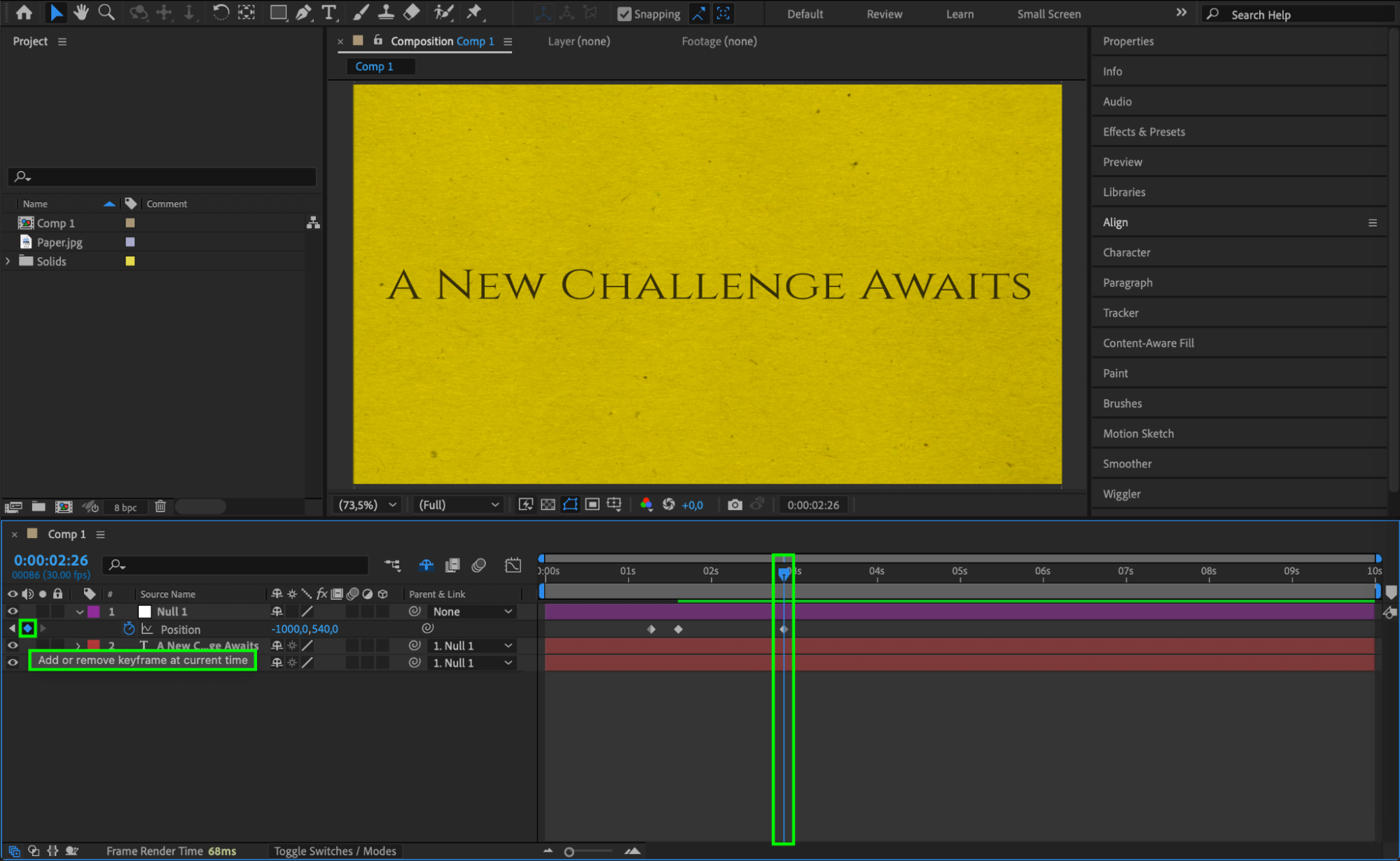 Select the Null Object and click the stopwatch next to Position to create a keyframe.