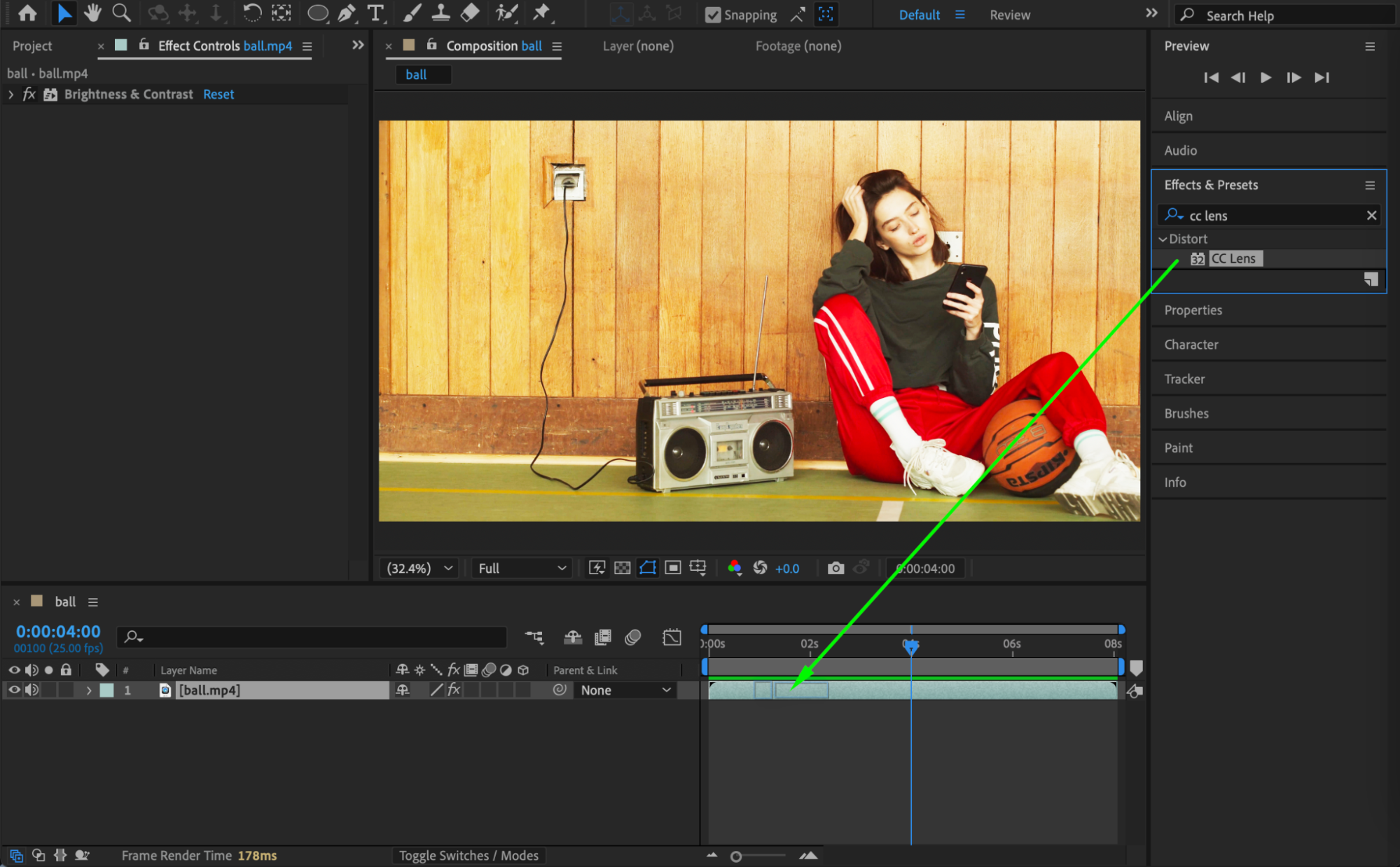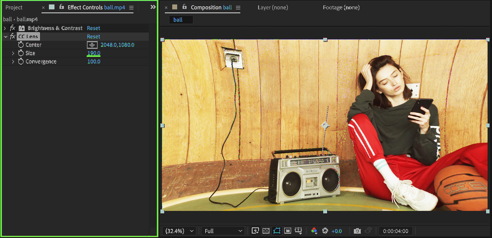 Add the CC Lens effect from the Effects & Presets panel. Set: