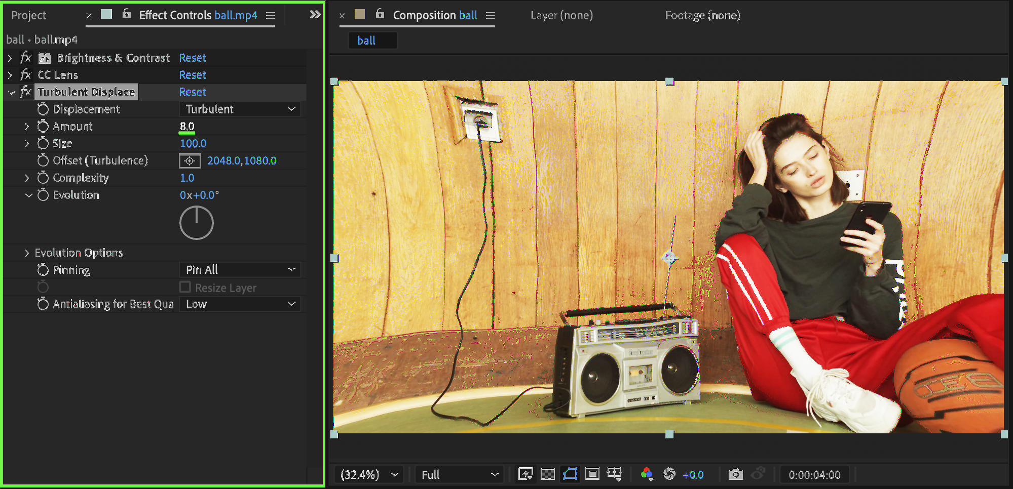 Preview the composition and fine-tune effect values to match your desired intensity and style.