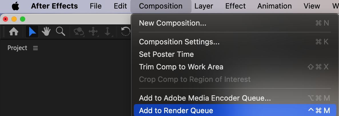 Go to Composition > Add to Render Queue.