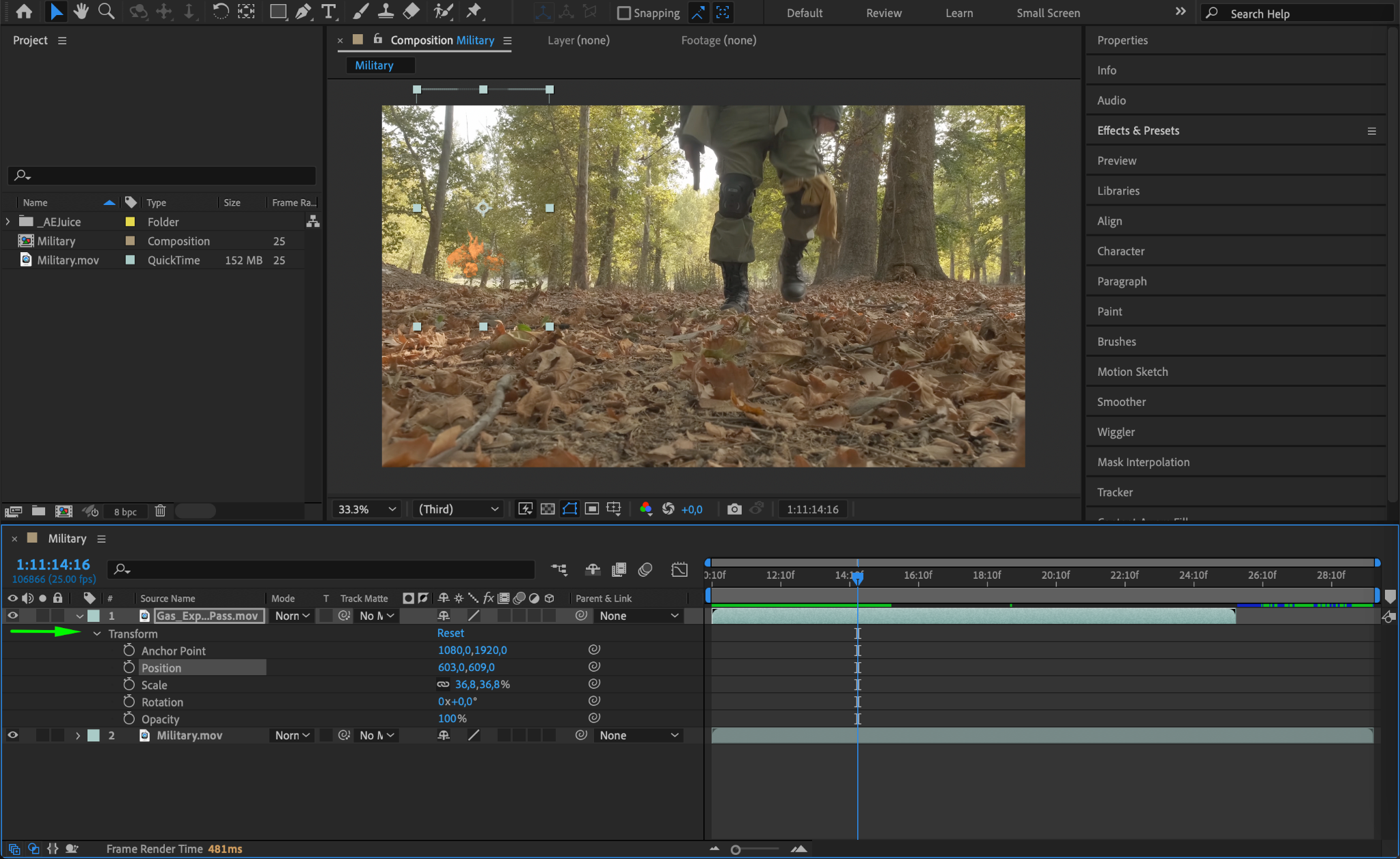 Once downloaded, find the explosion effect you want to use in the pack and apply it to your composition. Adjust its position, scale, opacity, and rotation using the Transform parameters to seamlessly integrate it into your scene.