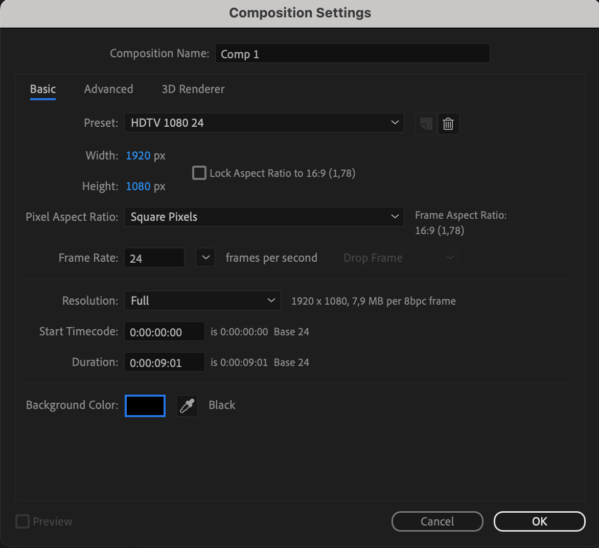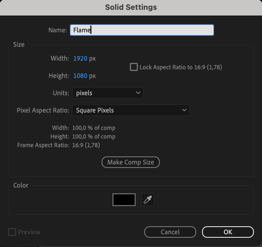 Create a new composition and set the parameters. Make sure to set the background color to black.