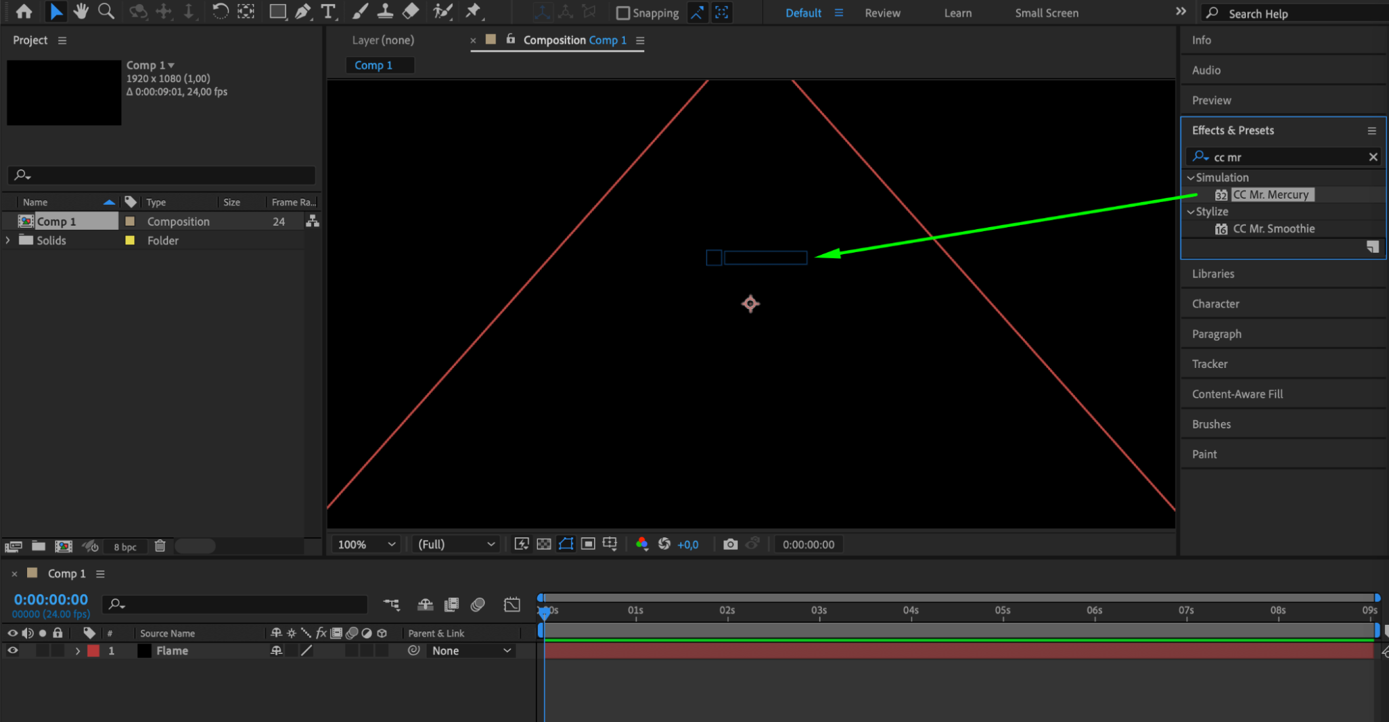 Navigate to the Effects & Presets panel and apply the CC Mr. Mercury effect to your layer.