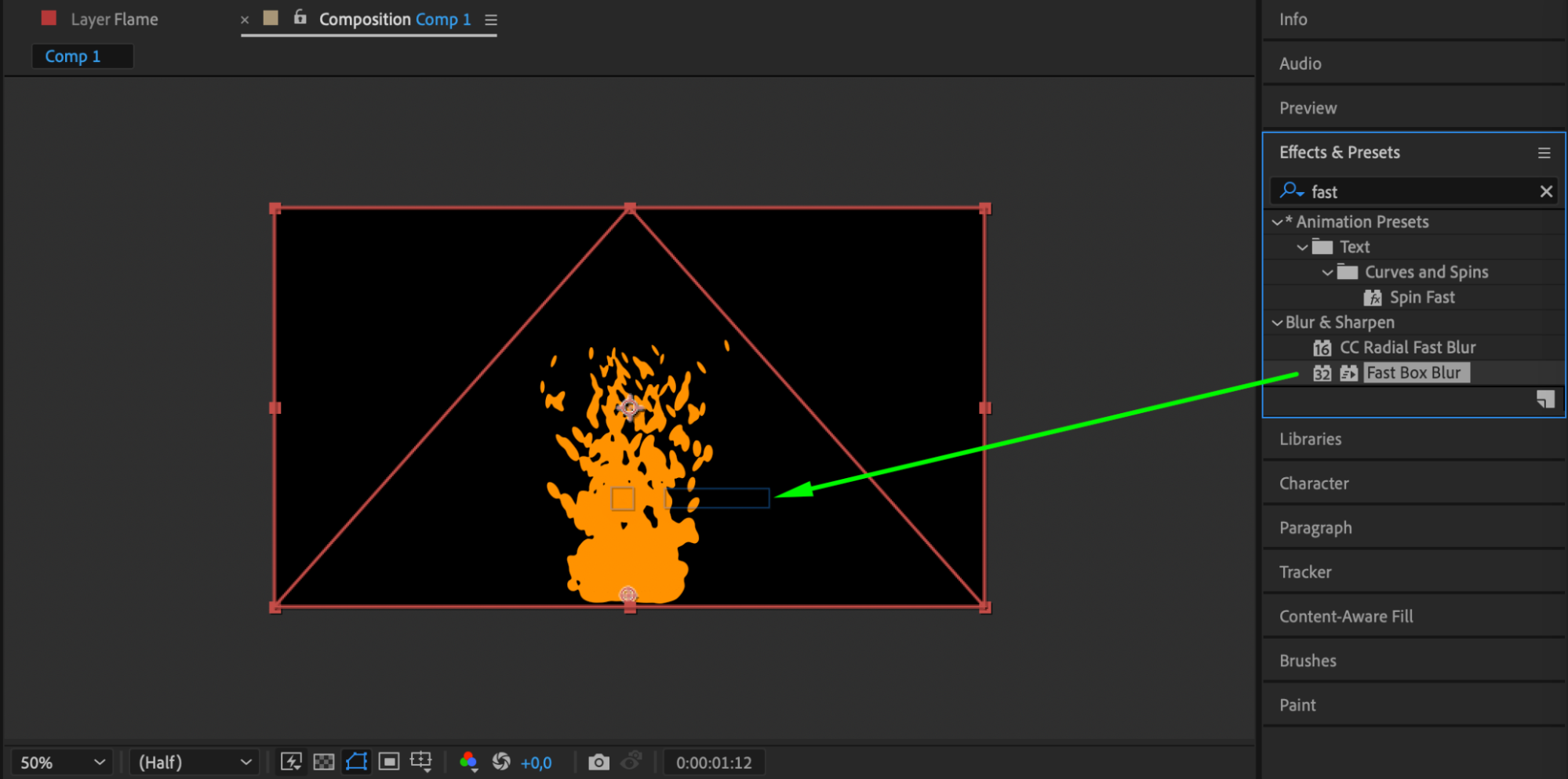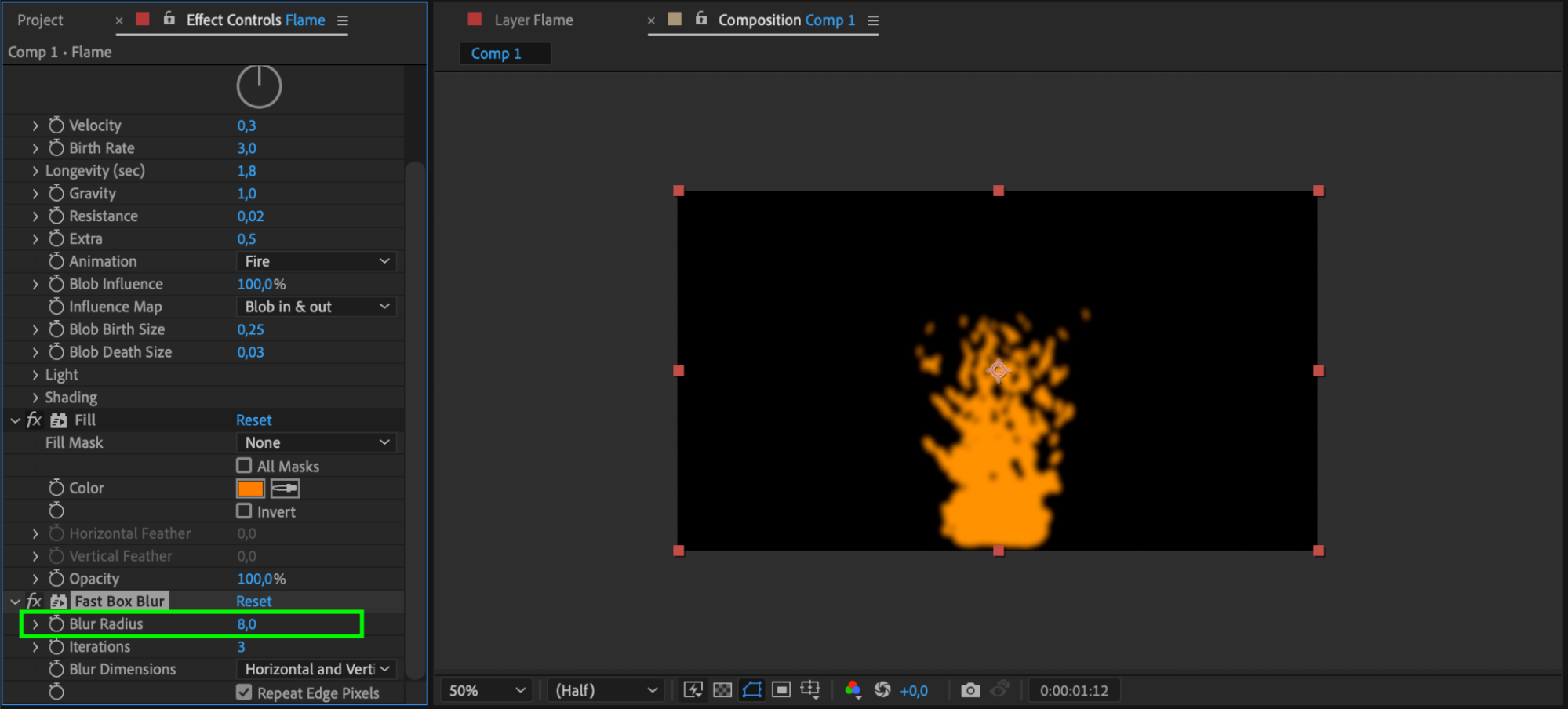 Add the Fast Box Blur effect and set the Blur Radius to 8.
