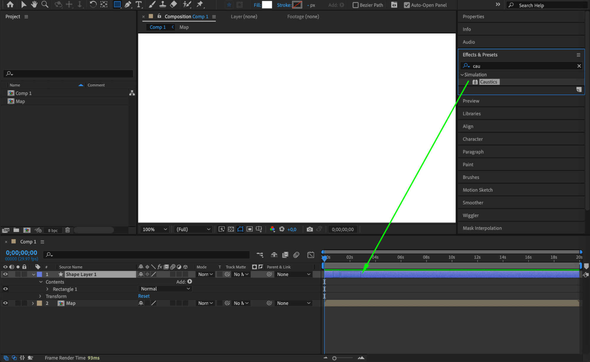 Apply the Caustics effect to this new shape layer from the Effects & Presets panel.