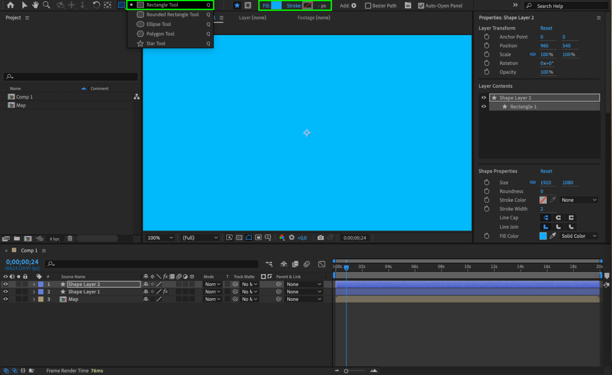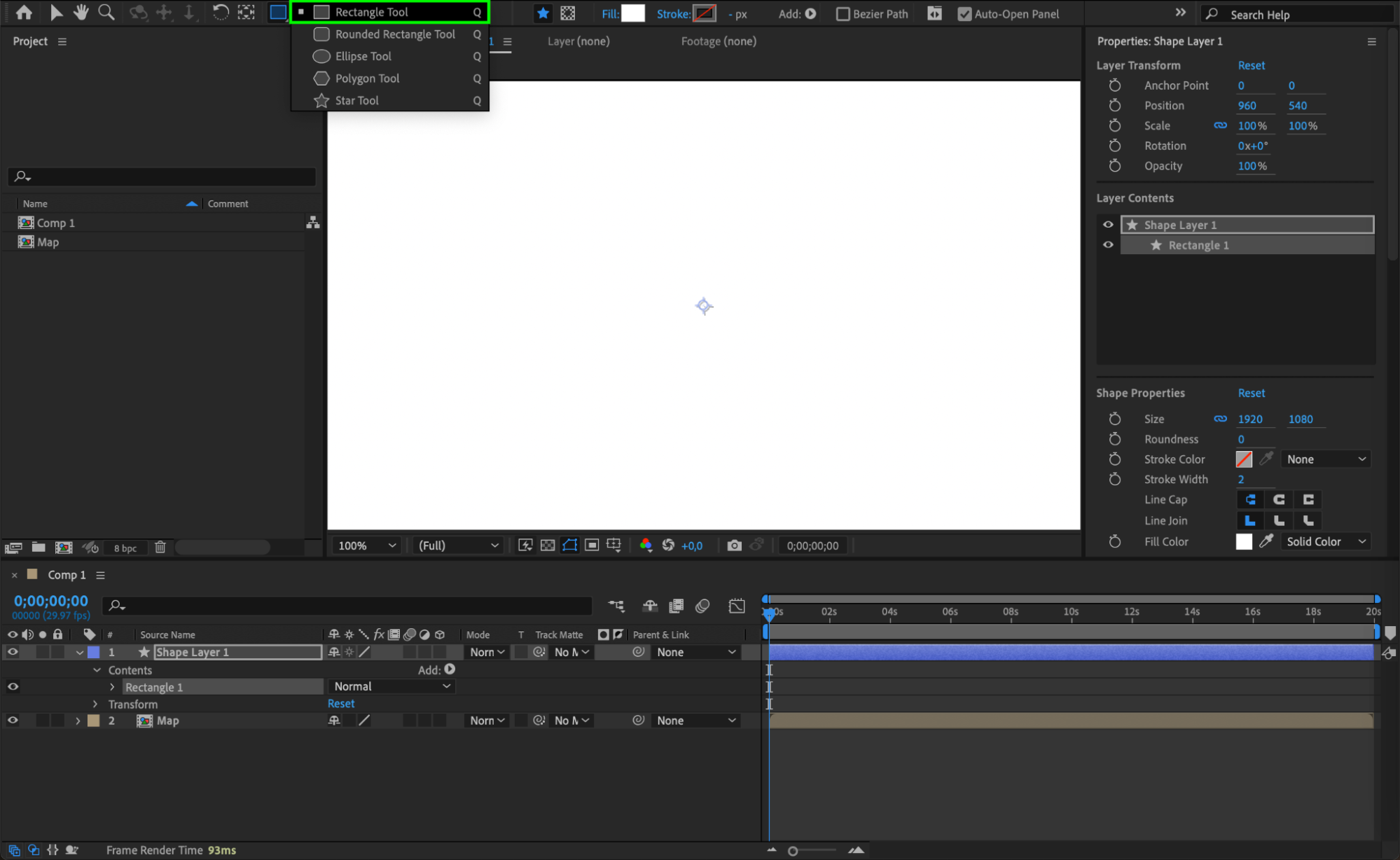 Double-click the Rectangle Tool (Q) to create a shape layer in your composition.