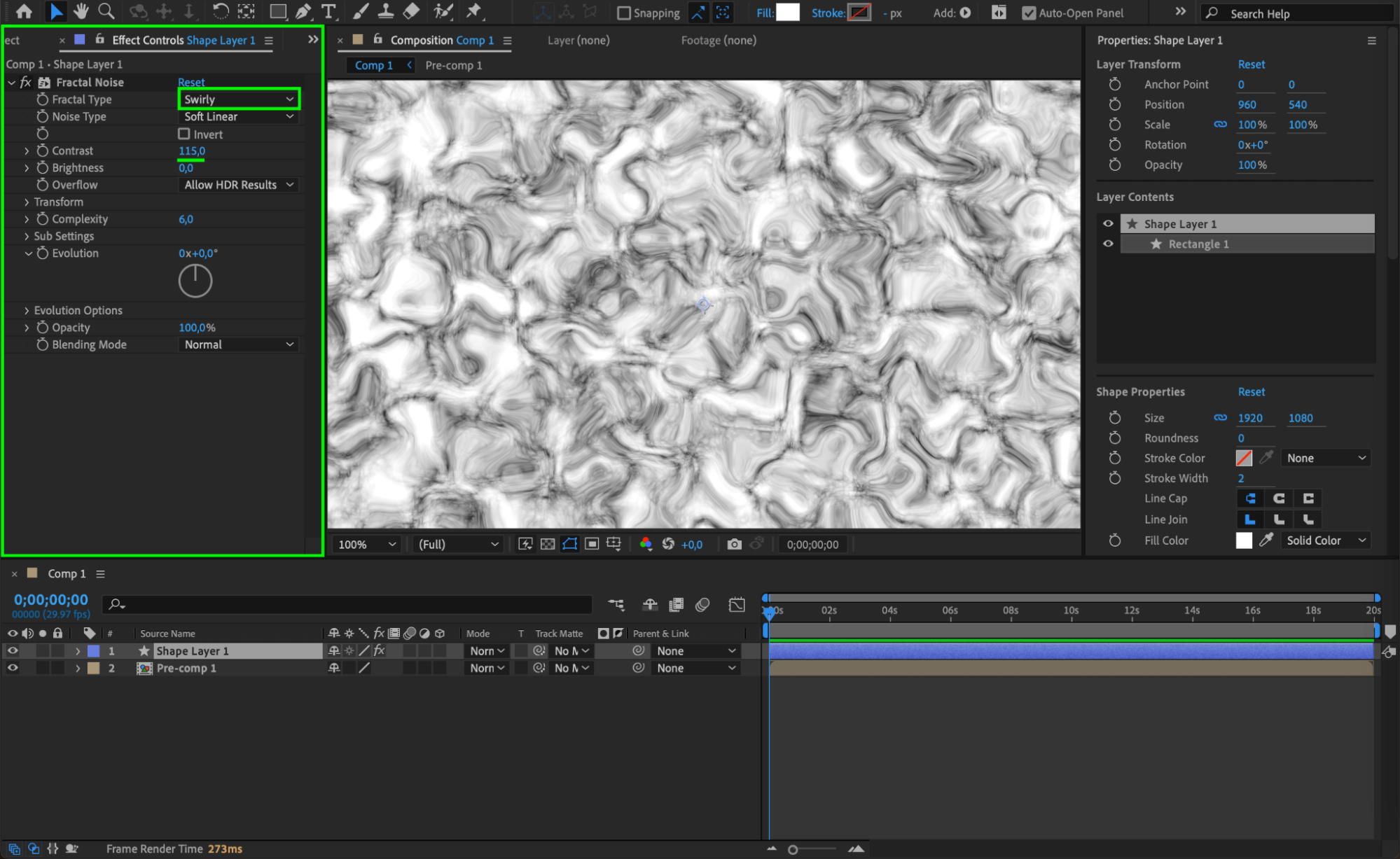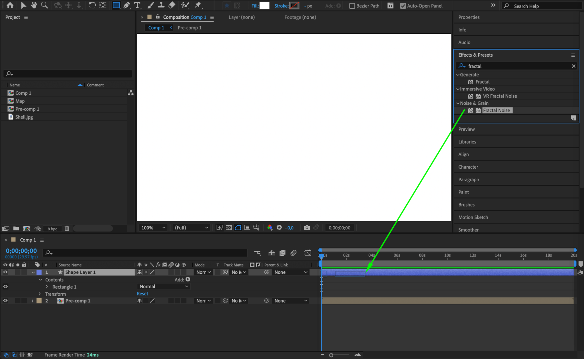 Apply the Fractal Noise effect from the Effects & Presets panel to the shape layer.