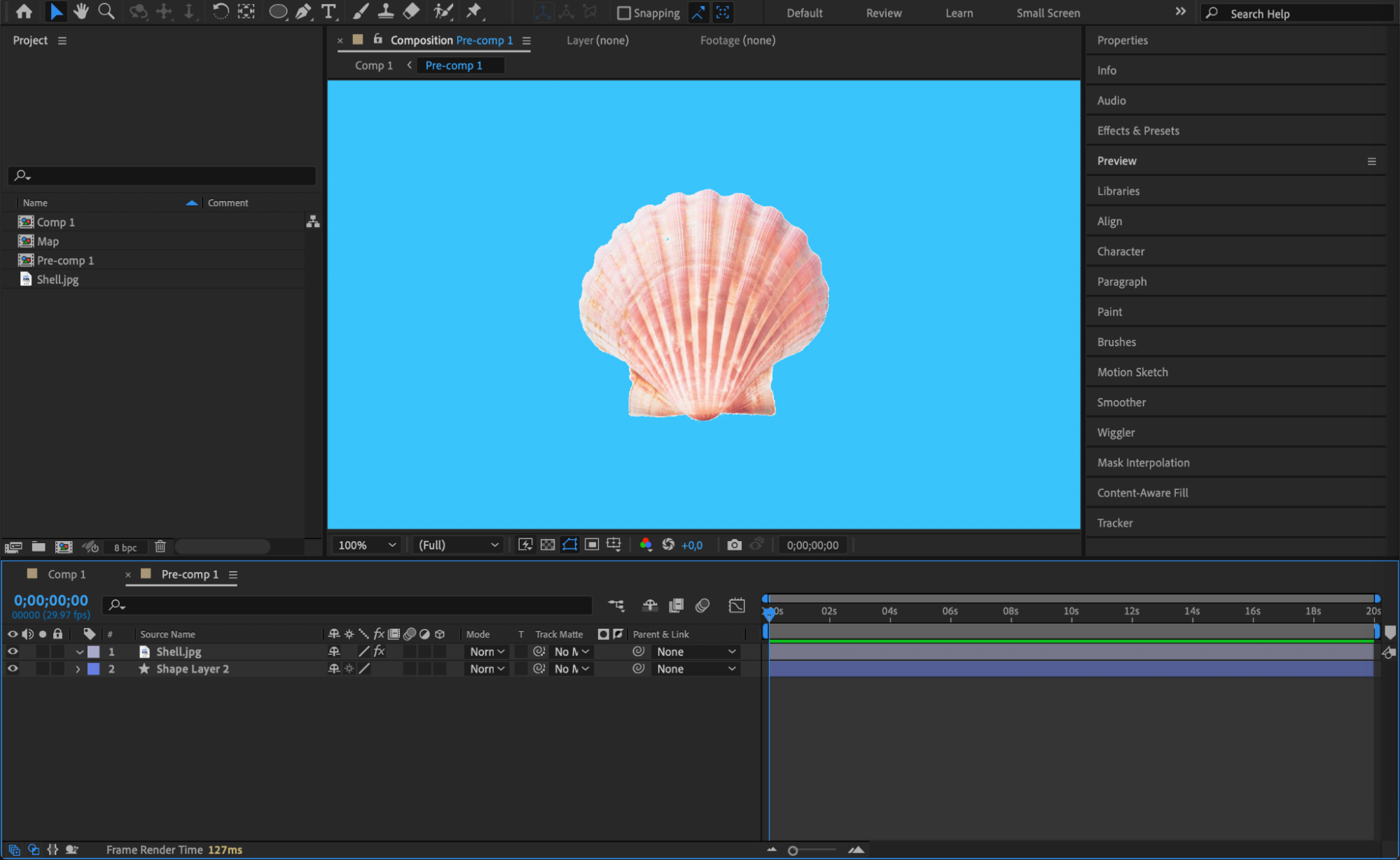 Right-click on the shape layer and choose Pre-compose. Name it “Map.”