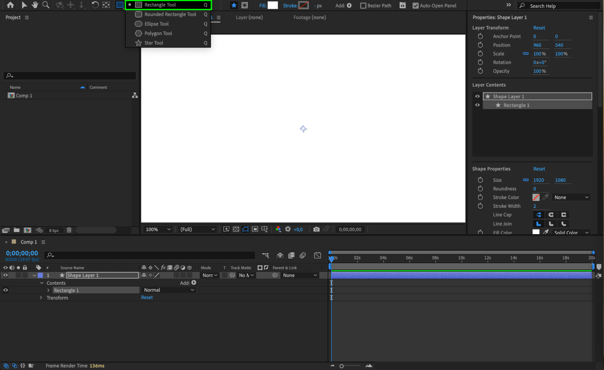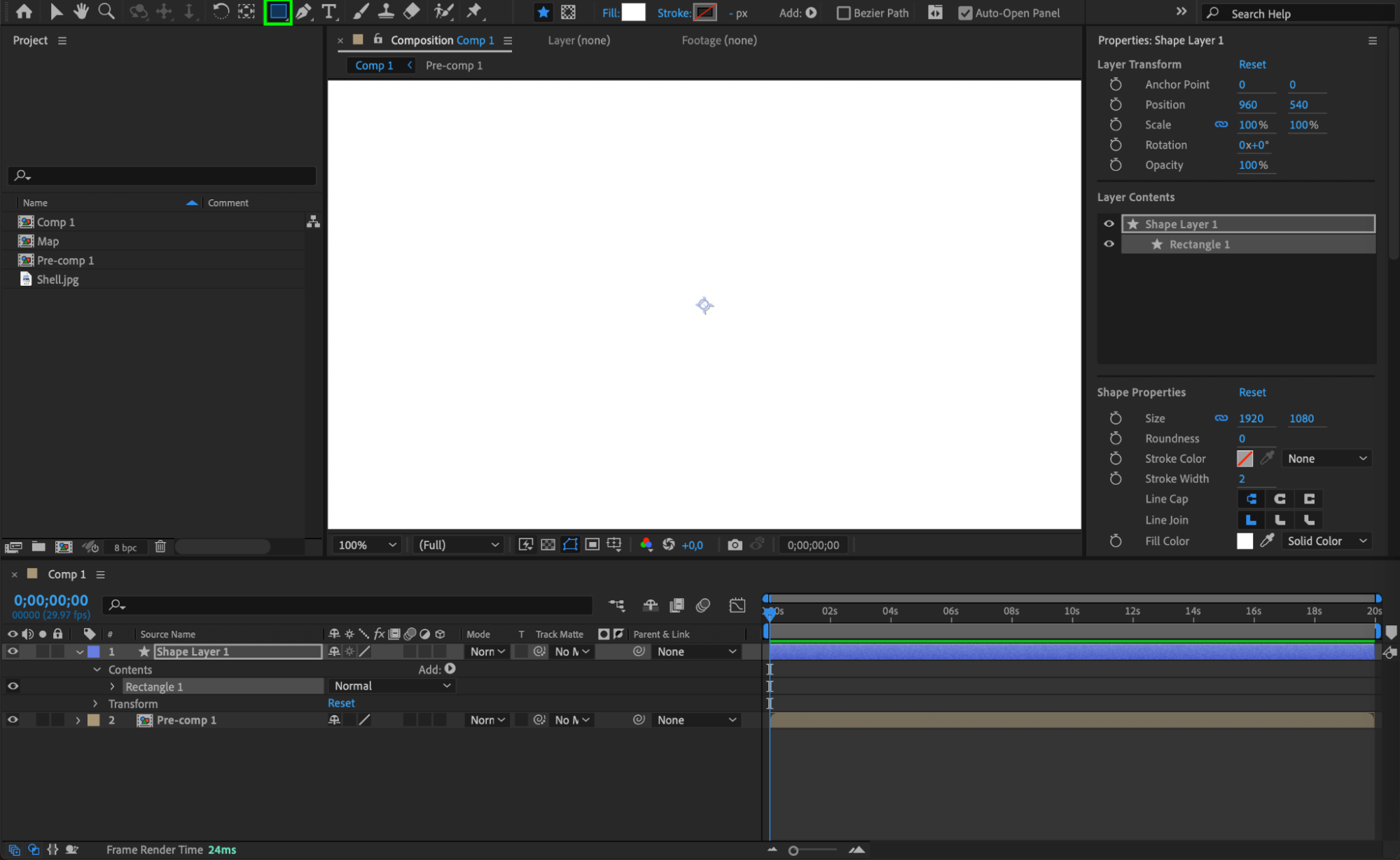 Double-click the Rectangle Tool (Q) to create a shape layer in your composition.
