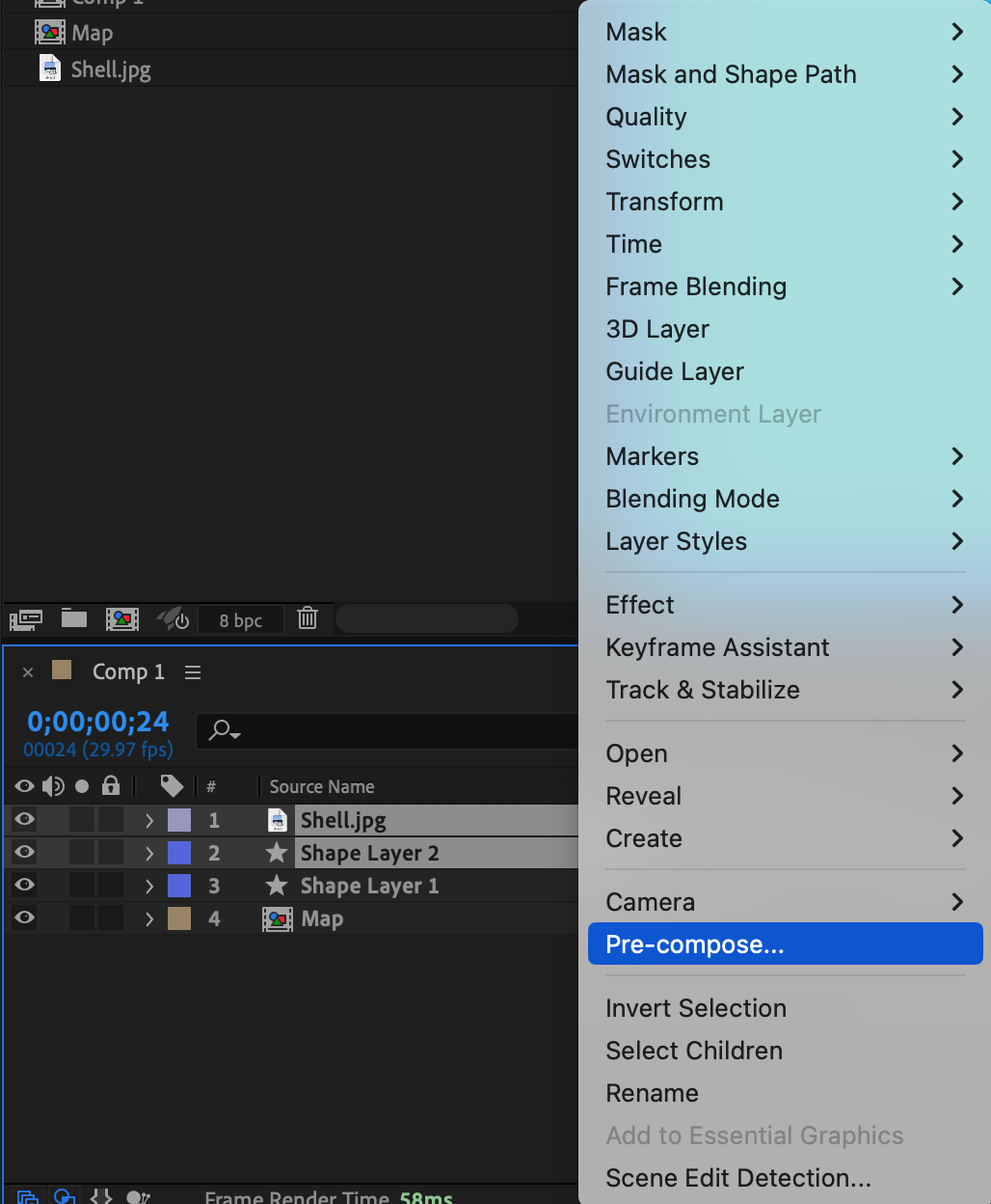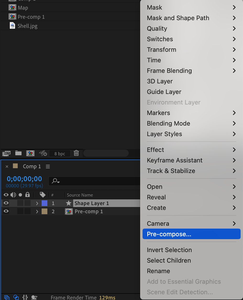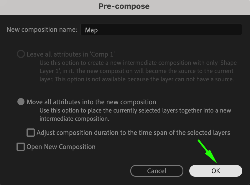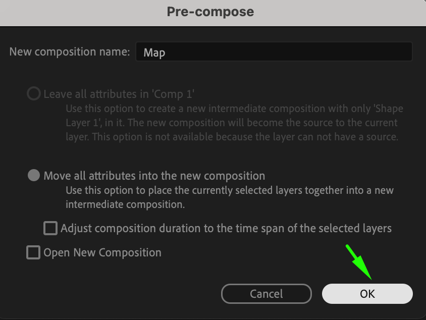 Right-click on the shape layer and choose Pre-compose. Name it “Map.”
