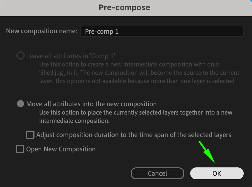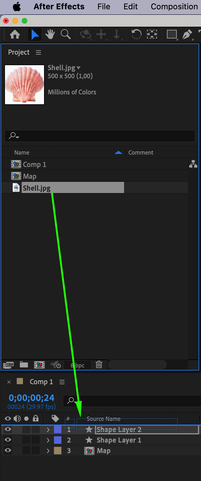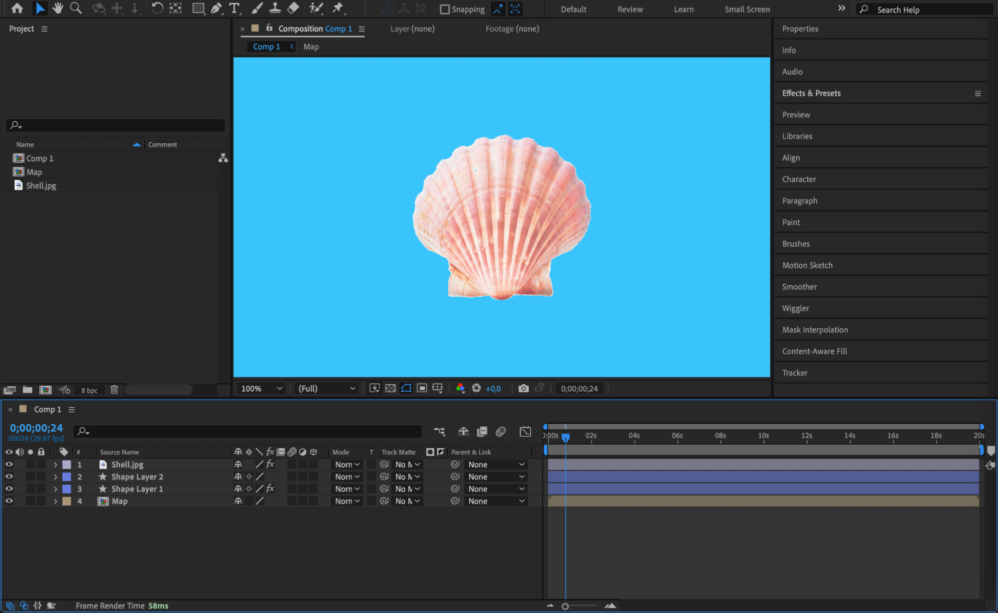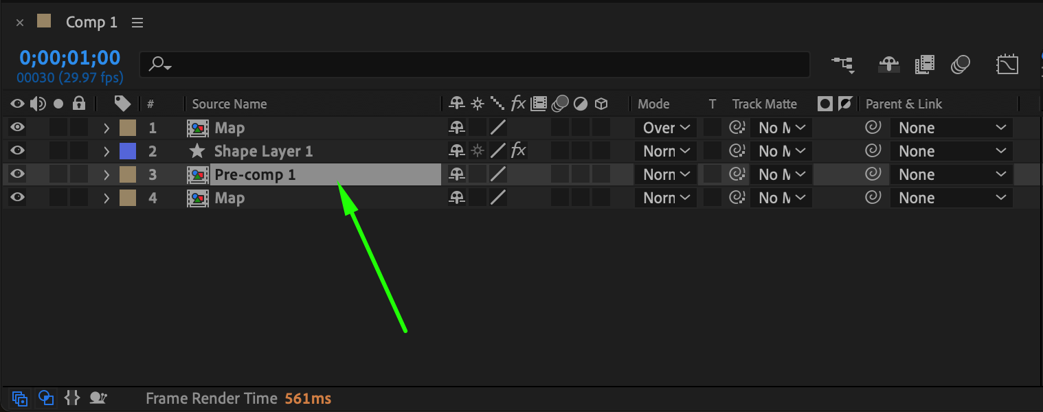 Right-click on the shape layer and choose Pre-compose. Name it “Map.”