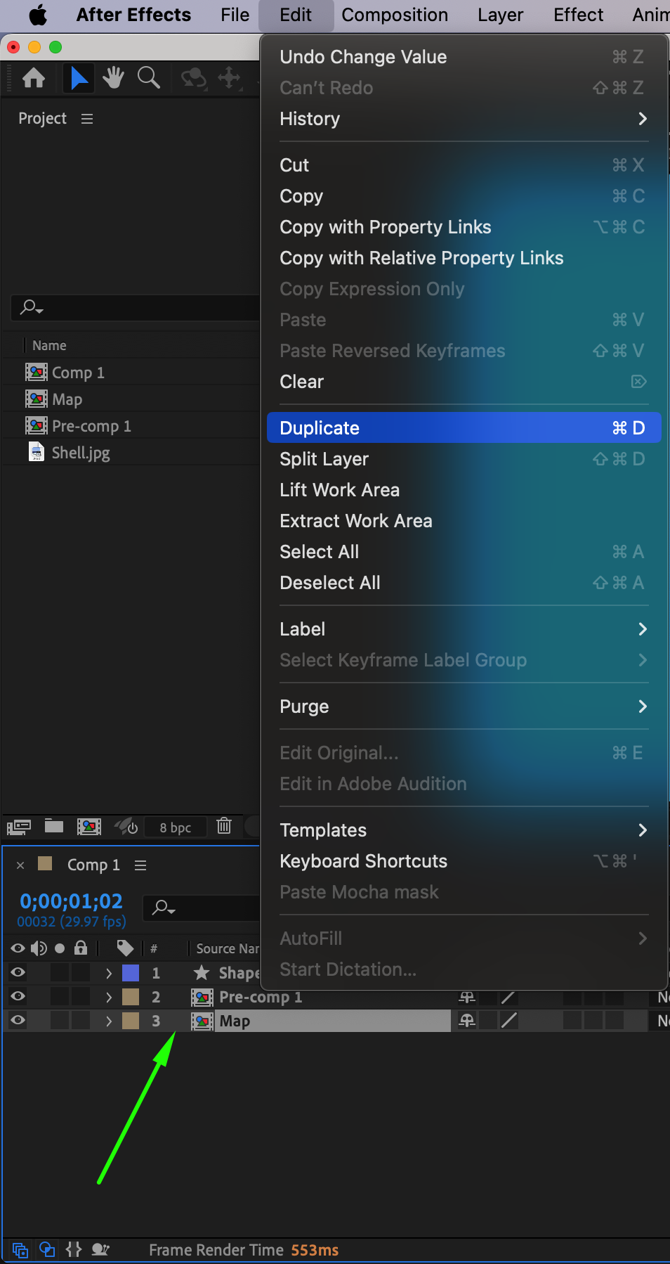 Step 17: Duplicate and Overlay the Map Pre-comp