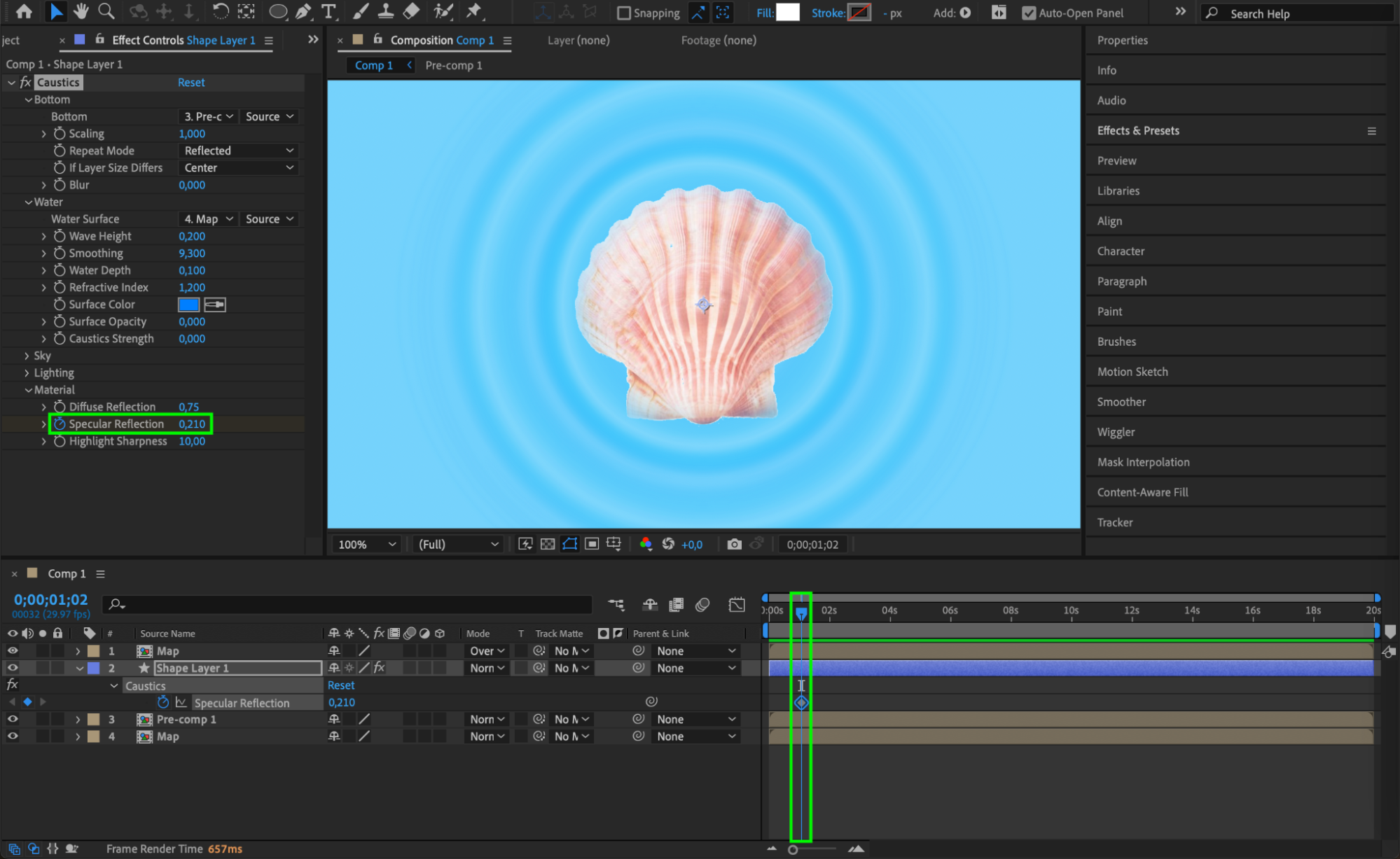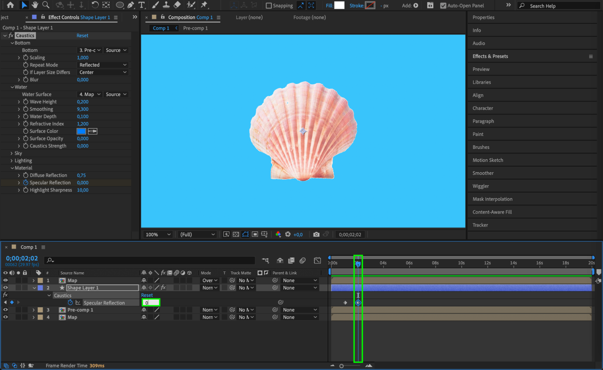 Step 9: Apply Caustics to Pre-comp