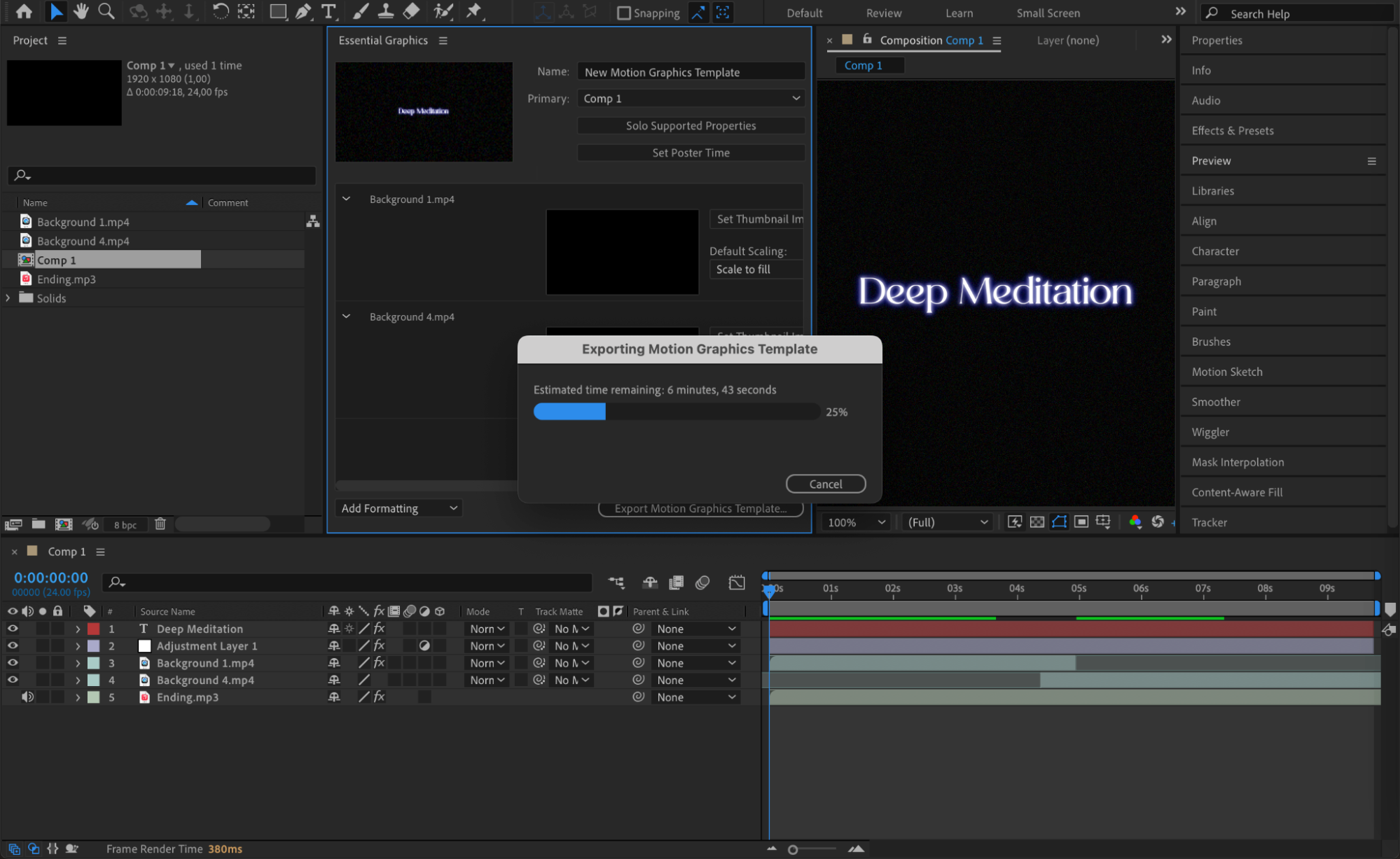 Click on the Export Motion Graphics Template button. A progress bar will appear as After Effects creates your MOGRT file.