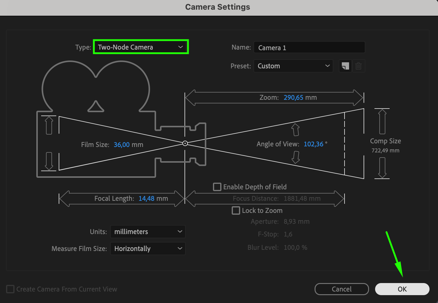 Go to Layer > New > Camera and select a two-node camera. This camera allows for precise control over the depth of field and perspective, essential for achieving a professional parallax effect.