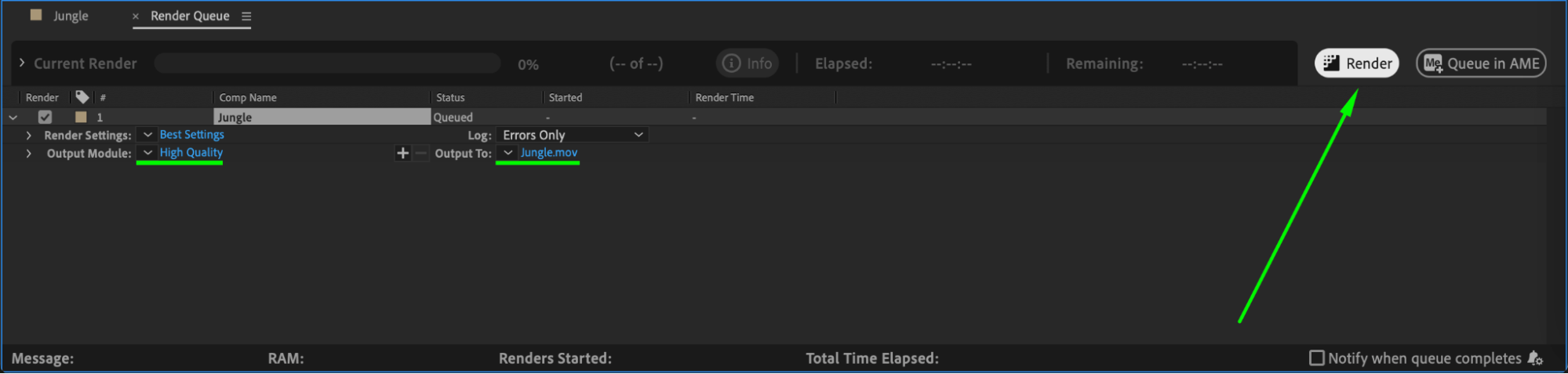 Once satisfied with the effect, go to Composition > Add to Render Queue. Adjust the output settings and click Render to finalize your video.