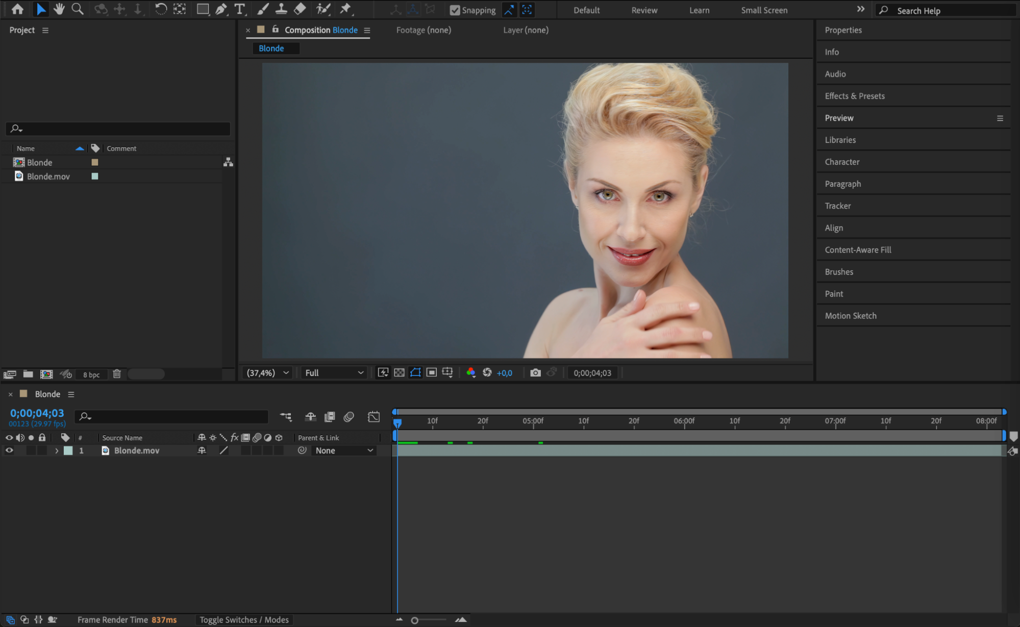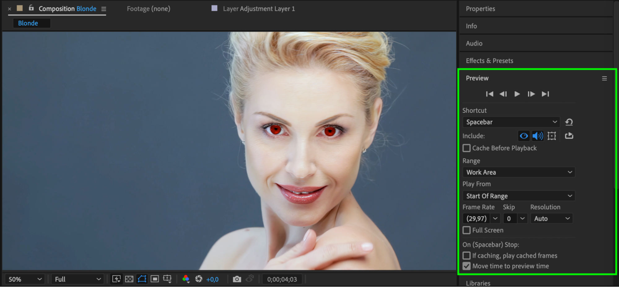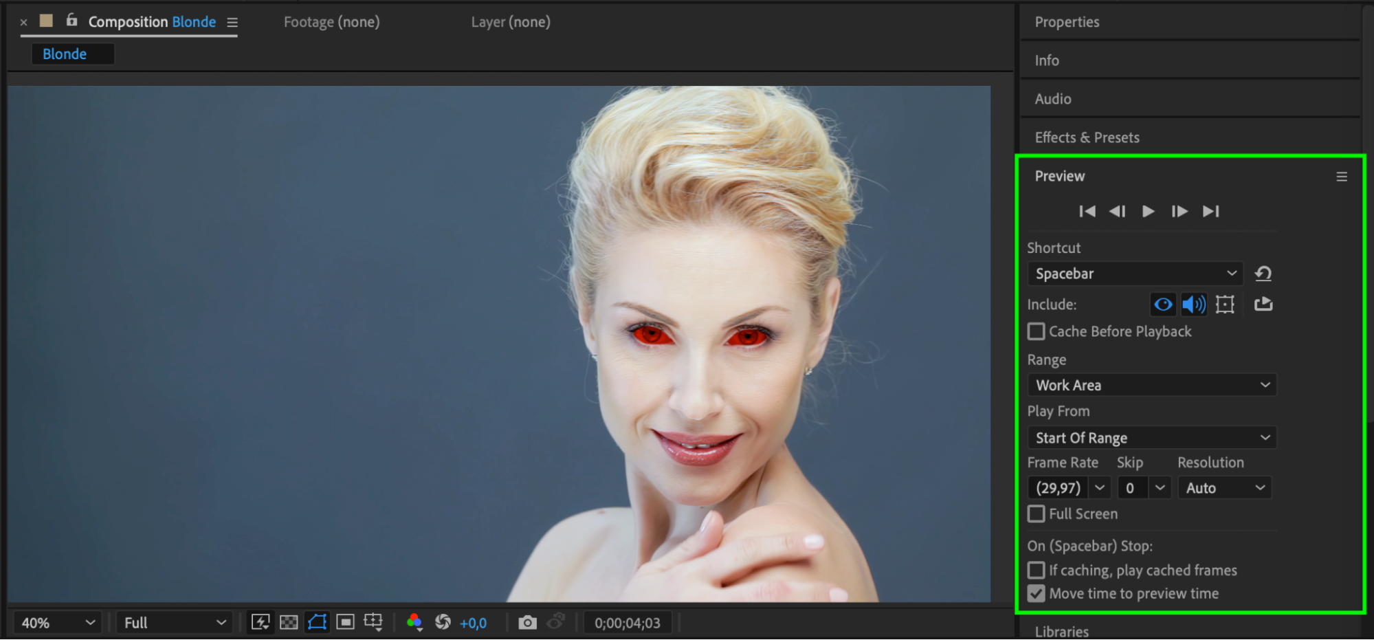 Launch After Effects and open the project where you want to apply the red eyes effect. Make sure you have a video or image where the eyes are clearly visible.