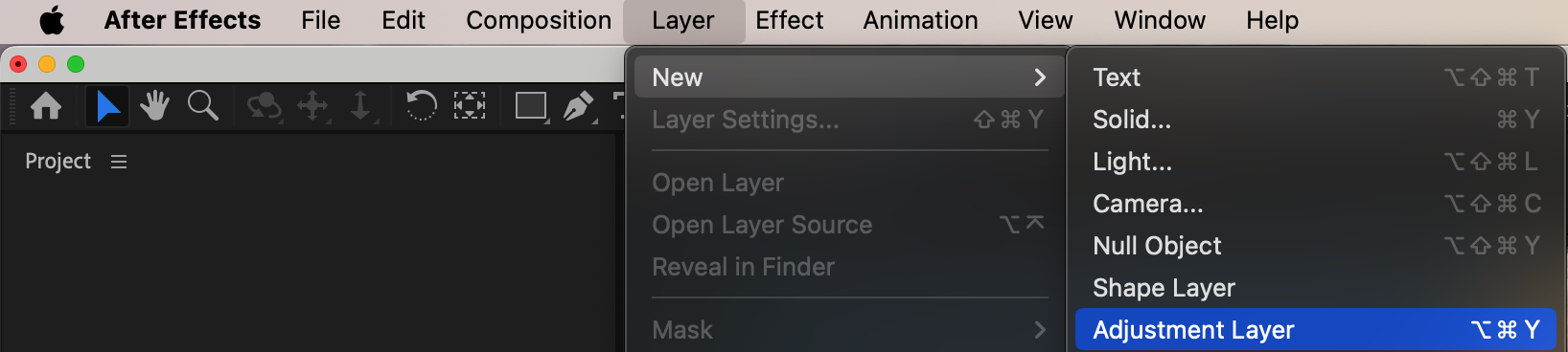 Go to Layer > New > Adjustment Layer. This layer will allow you to apply effects without modifying the original footage.