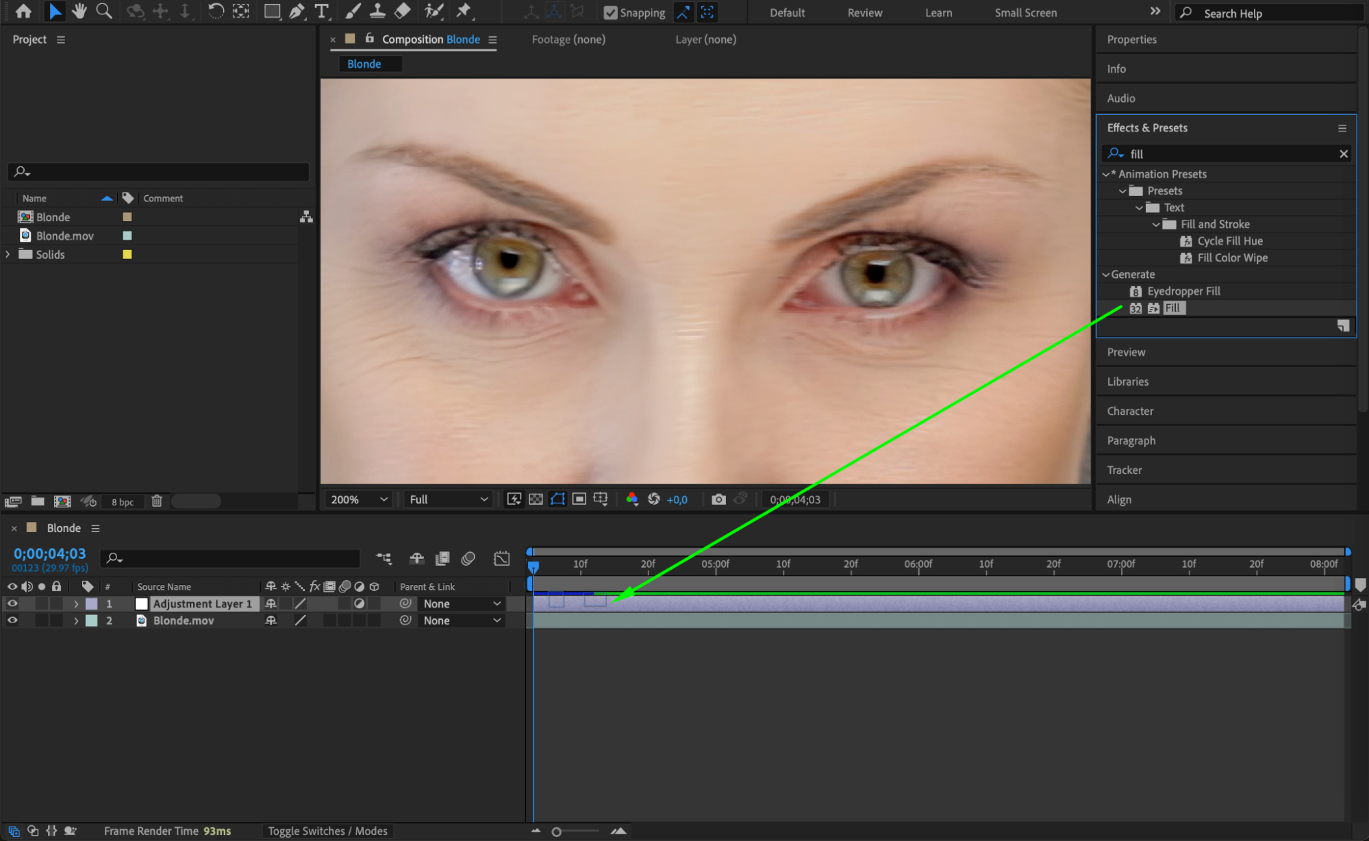 Go to the Effects & Presets panel, search for Fill, and apply it to the adjustment layer.