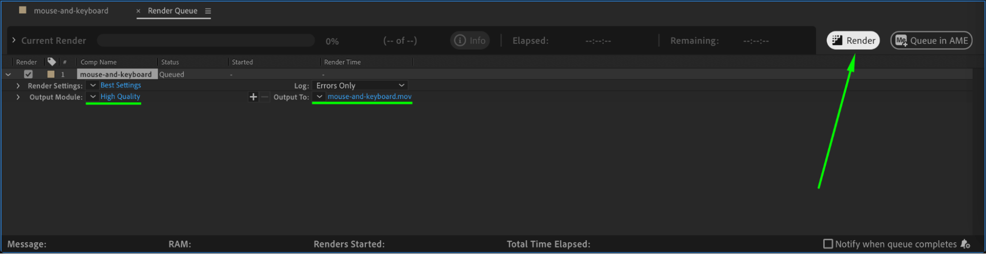 Once satisfied with the result, render your composition. Go to Composition > Add to Render Queue, configure your output settings, and click Render. This will export your project with the applied transition.