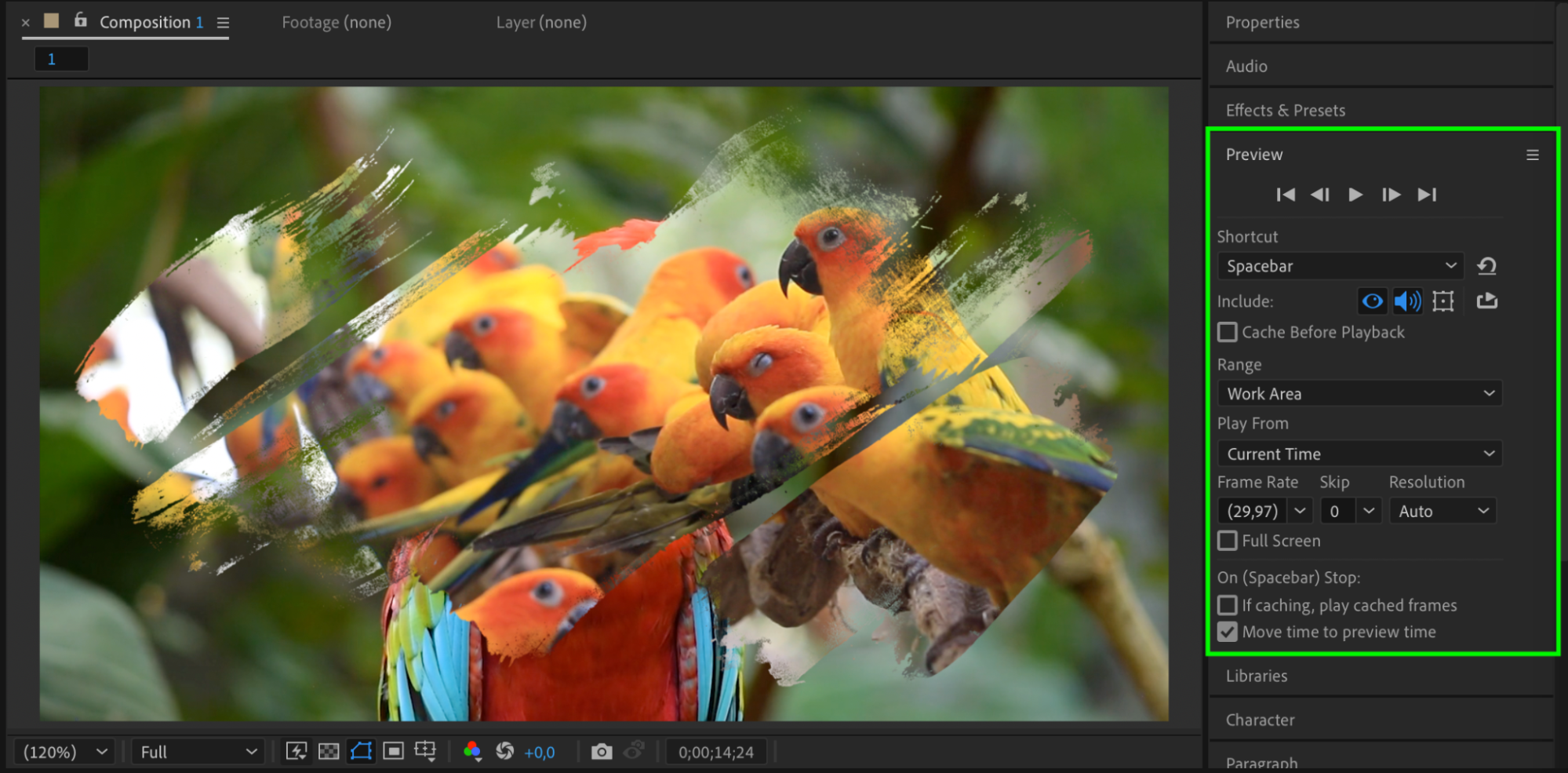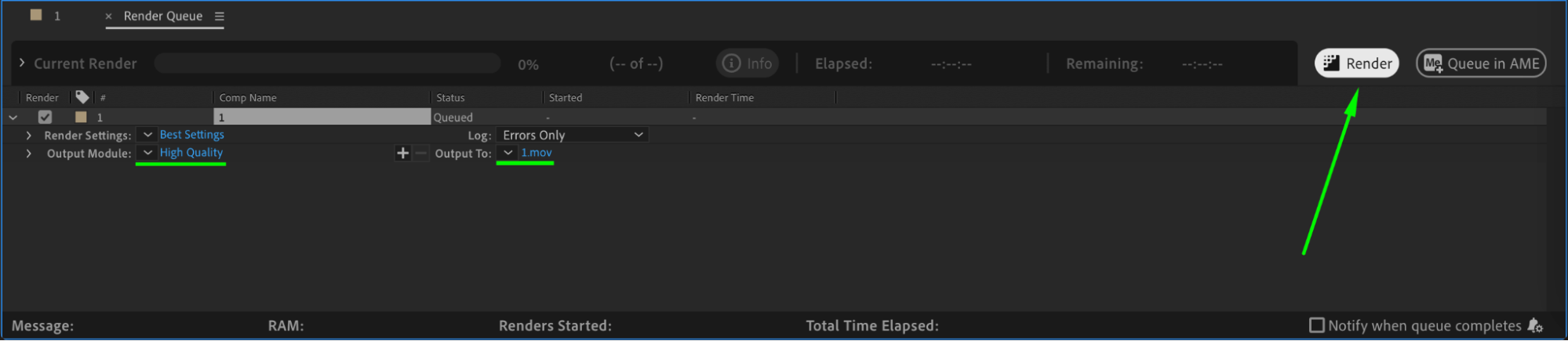 Once you’re satisfied, go to Composition > Add to Render Queue or use Adobe Media Encoder to render your final composition.