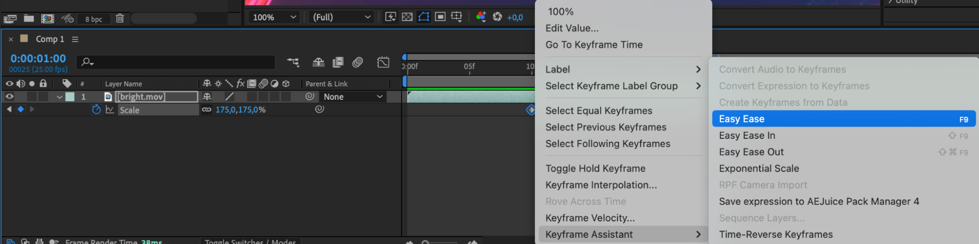To create a more natural and realistic zoom transition, right-click on the selected keyframes and choose “Keyframe Assistant” > “Easy Ease”. This will smooth out the animation, adding a touch of professionalism to your video.