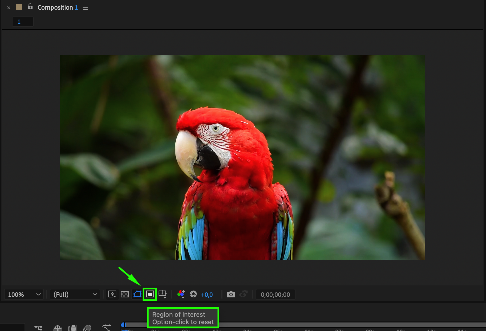 Use the Region of Interest button at the bottom of the Composition panel to select the desired area. Go to “Composition” > “Crop Comp to Region of Interest” to crop the composition to this selected area. This method quickly removes unwanted parts outside the defined region, making your composition more focused and clean.