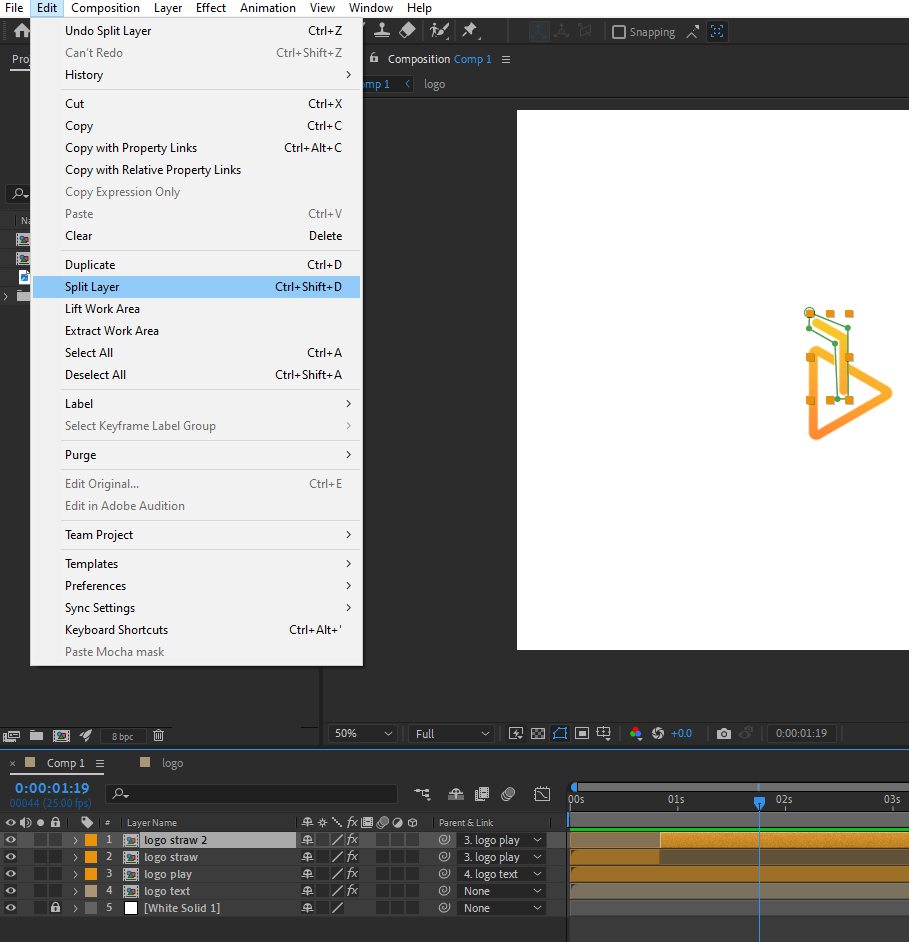 After Effects offers a wide range of hotkeys to streamline your workflow. Familiarize yourself with essential hotkeys such as “Alt + [,” and “Alt + ]” to trim the start and end points of your clips, “Ctrl + Shift + D” to split layers.