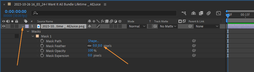 - To soften the edges of the mask, go to the Mask properties and increase the Feather value.
