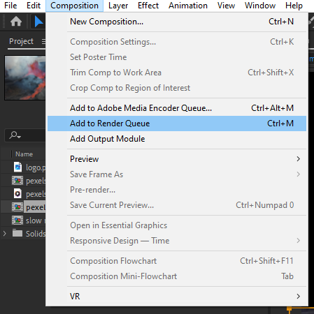 - Once you’re satisfied, go to Composition > Add to Render Queue to set up output and export your composition.