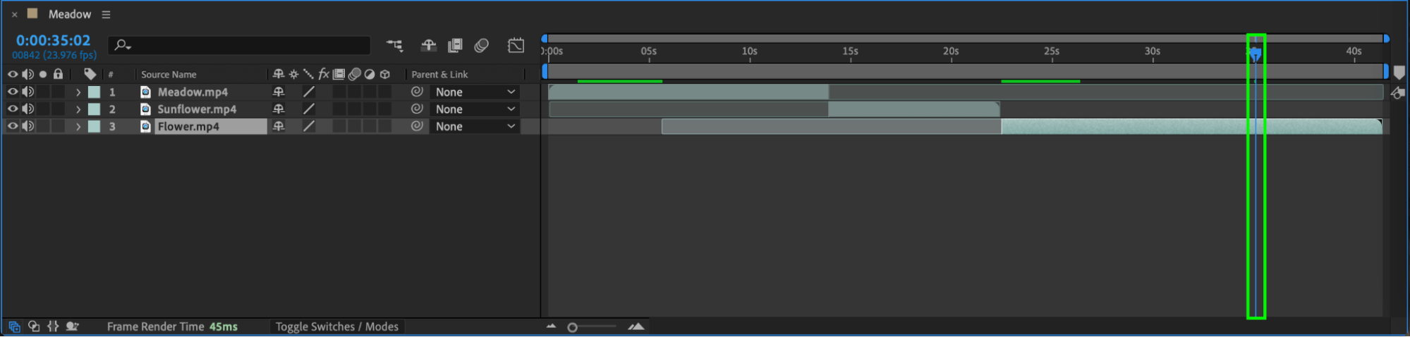 For more precise trimming, you can use the shortcuts “Alt/Option + [” and “Alt/Option + ]”. These shortcuts allow you to trim the in-point and out-point of a layer based on the Current Time Indicator. This method is useful for making quick adjustments without needing to split the layer entirely.