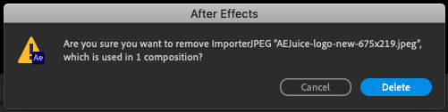 However, if the asset is being used in a composition, you will receive a warning box asking if you are sure you want to delete the asset.