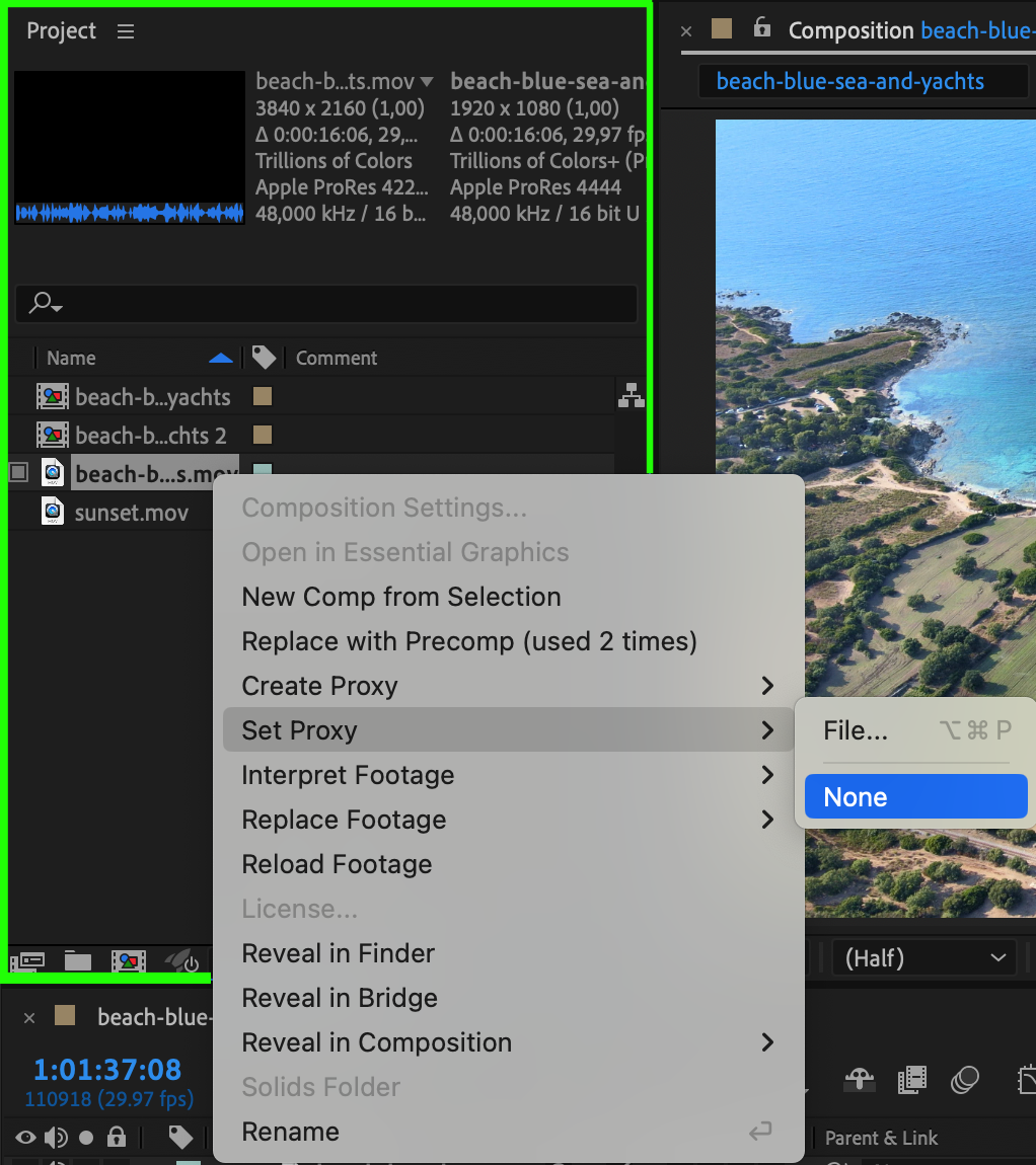Disabling Proxy in After Effects