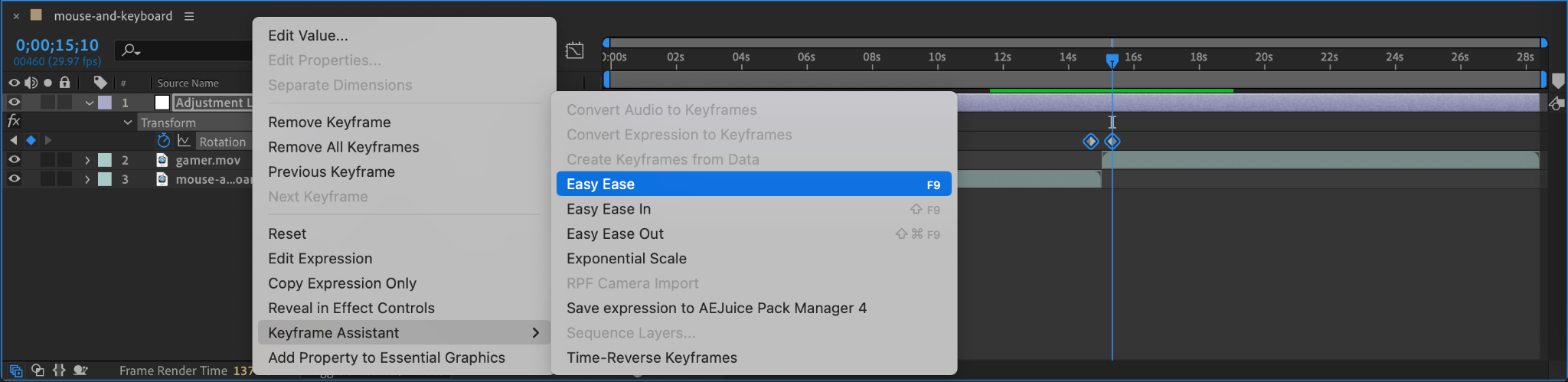 Step 6: Apply Easy Ease and Adjust with the Graph Editor