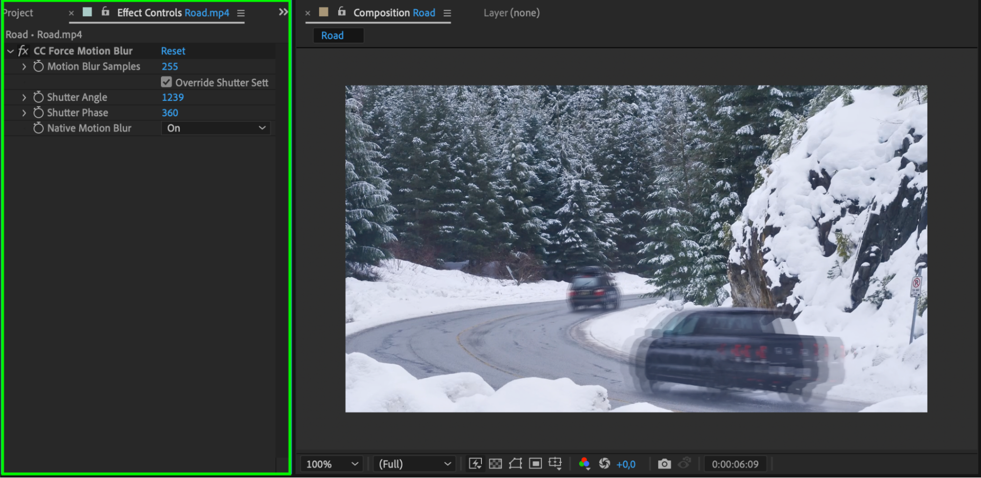 For more control over the motion blur, you can use the CC Force Motion Blur effect, which offers additional settings to fine-tune the effect: