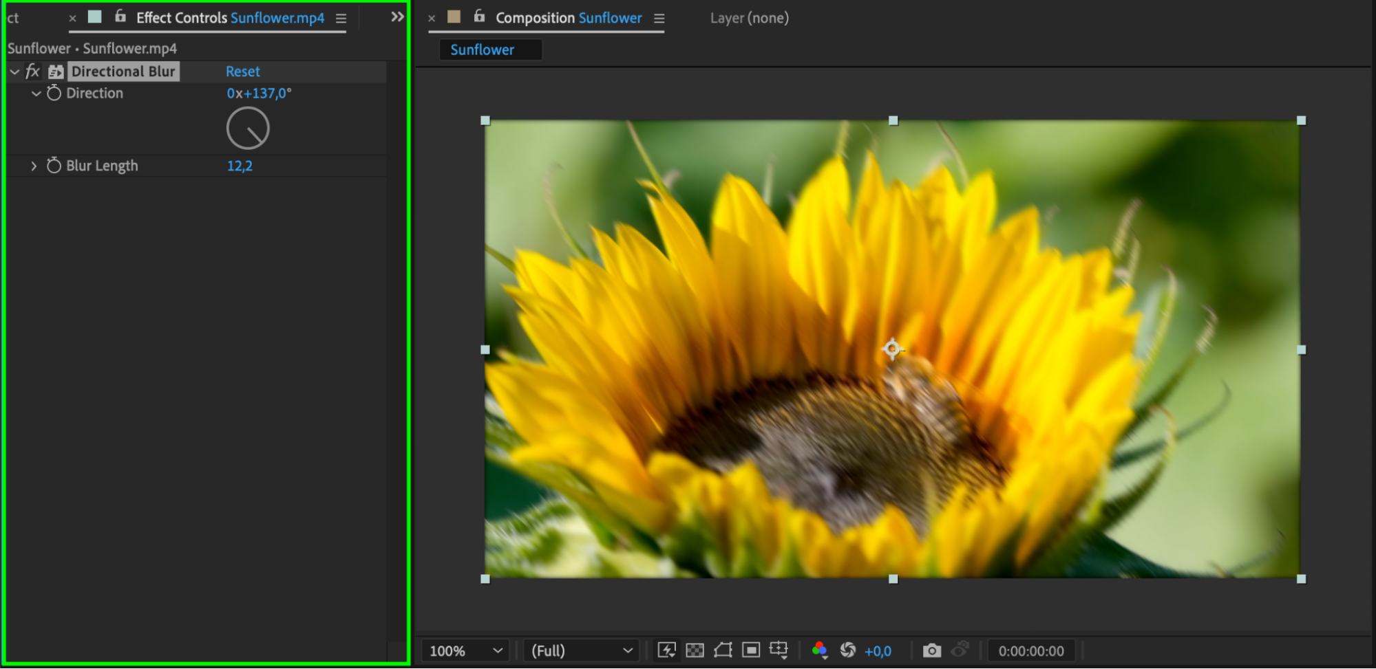 Adjust the “Direction” parameter to set the angle of the blur, and the “Blur Length” to control the intensity of the effect.