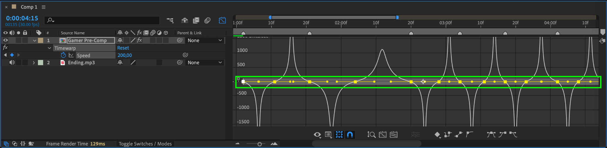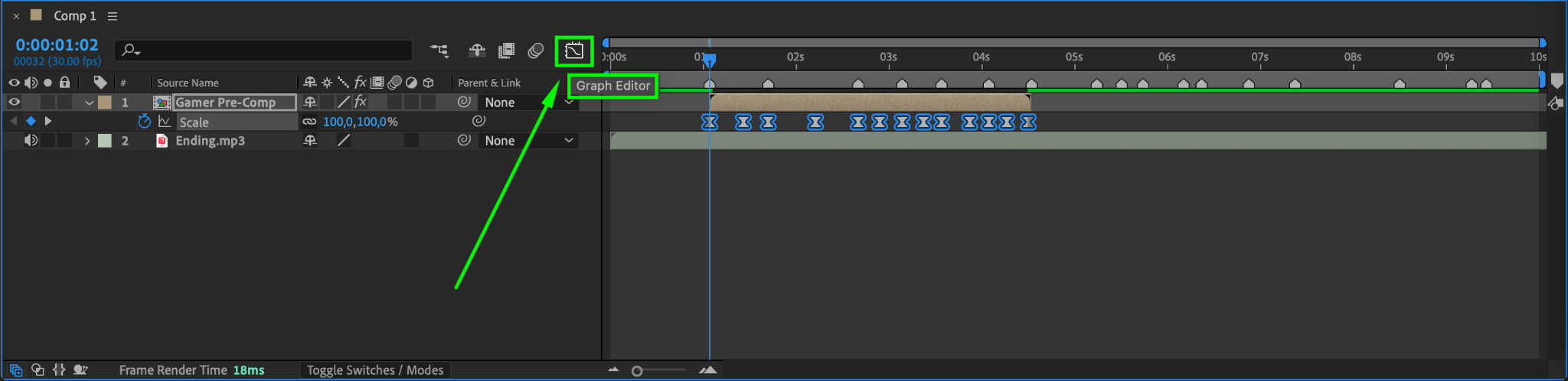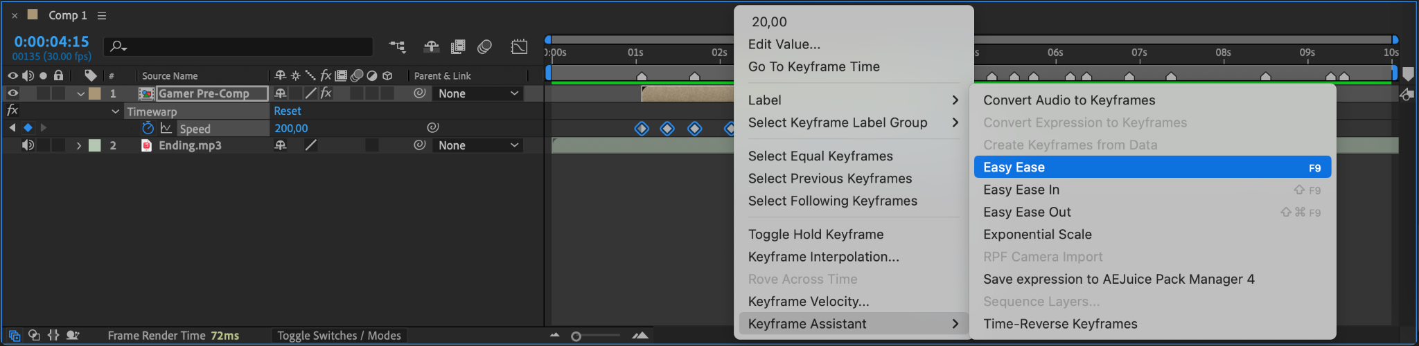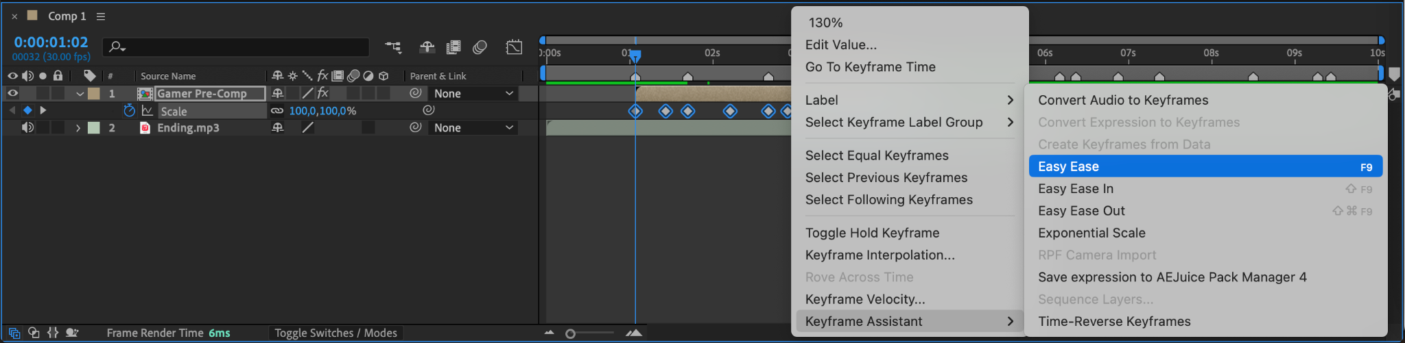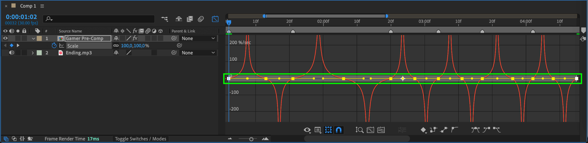 Step 14: Apply Easy Ease to Scale Keyframes