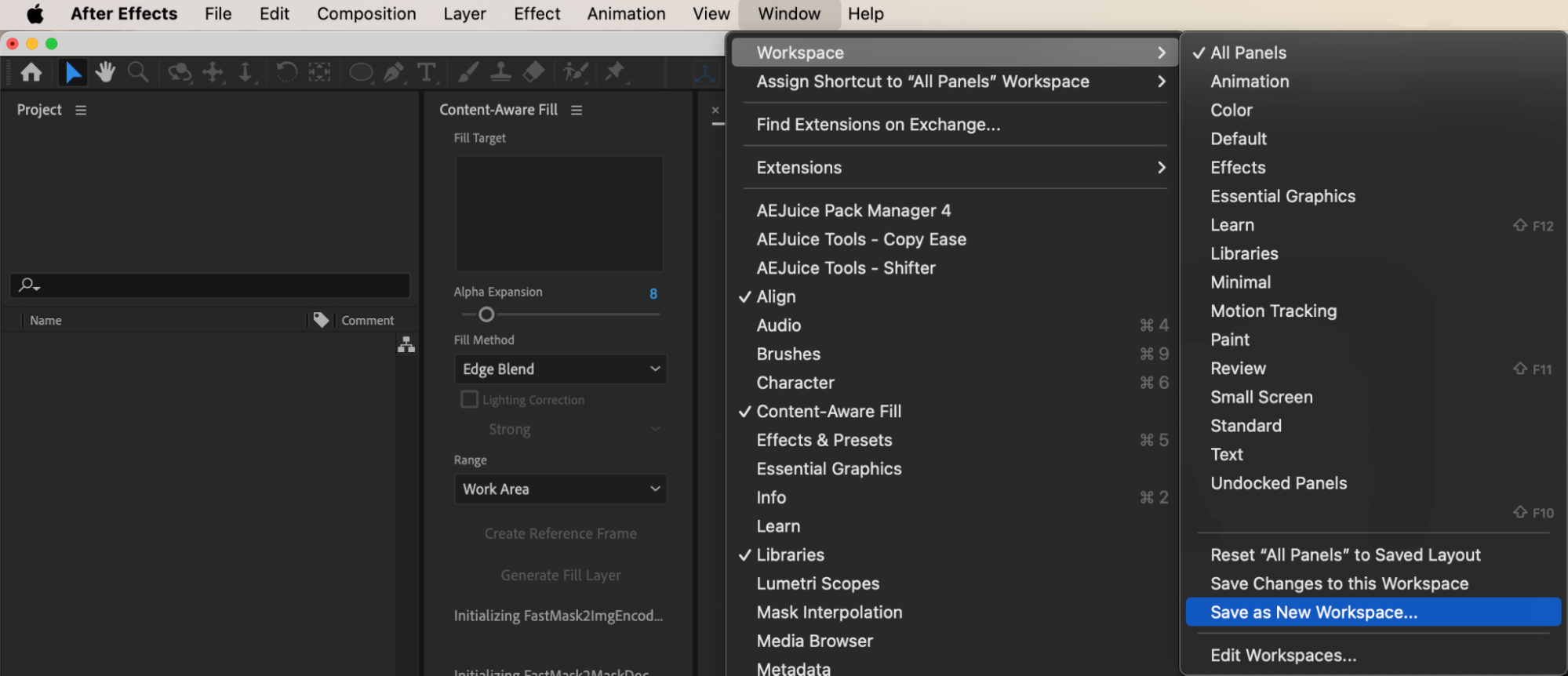 After arranging the panels, you can save your custom layout for easy access in future projects. Go to Window > Workspace > Save as New Workspace. Name your workspace and save it. Now, you can quickly switch to this customized workspace anytime you open After Effects, keeping your setup consistent and efficient.