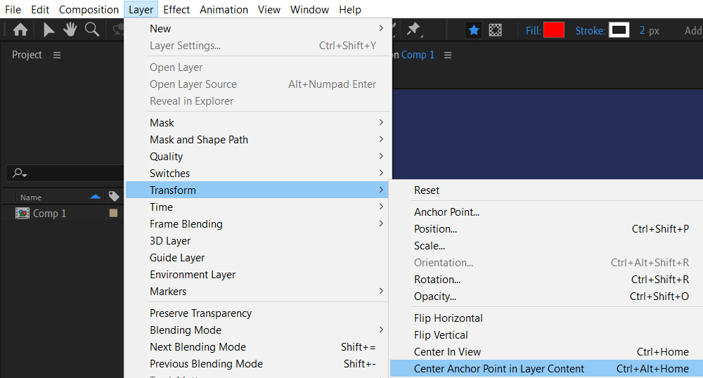 Ctrl/Cmd + Alt/Option + Home: Center the anchor point of a shape layer.